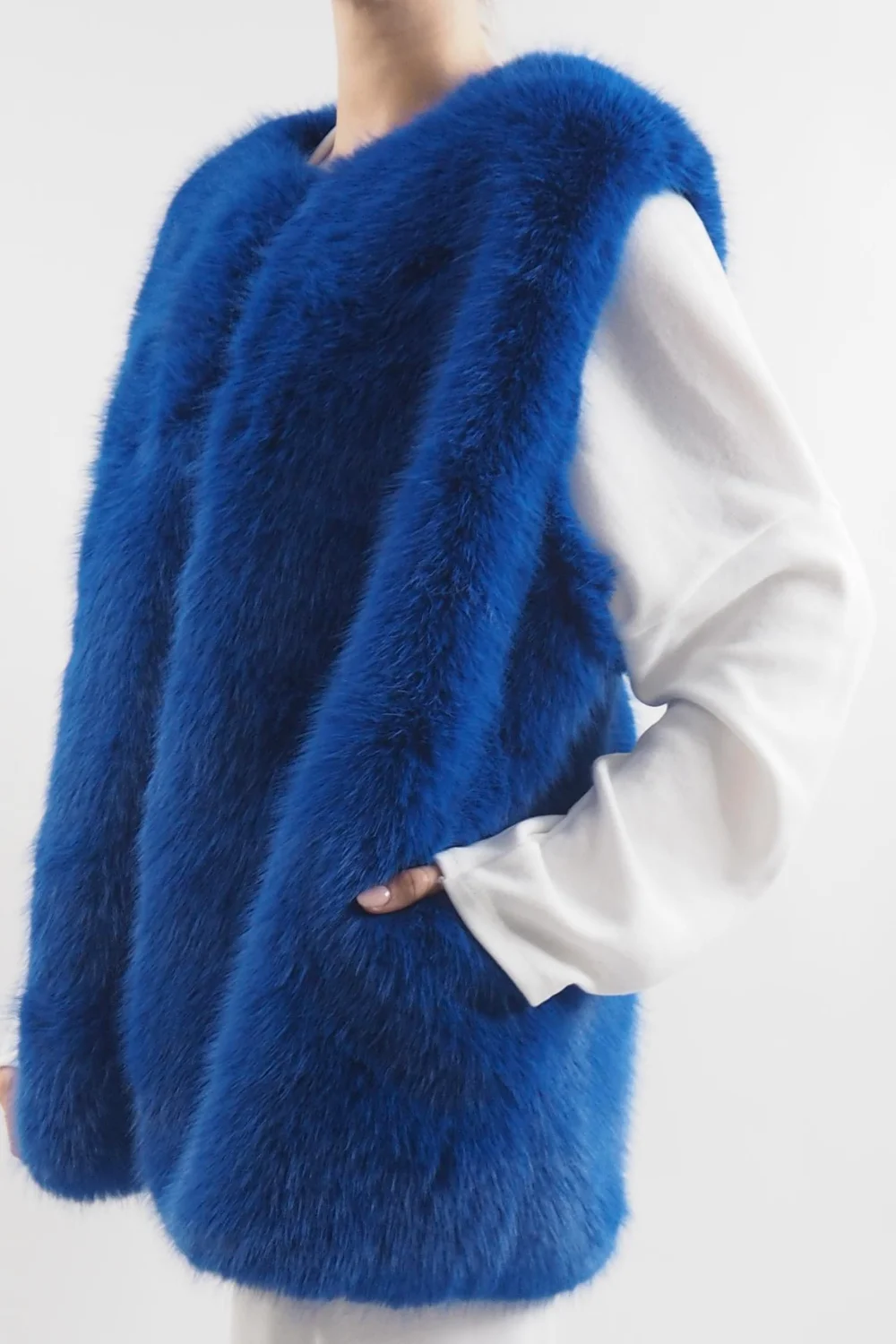 Indulge in the epitome of winter luxury with our exquisitely soft faux fur gilet: the Laundry b Corchevel Gilet in Sapphire, blue tone, is a must-have in your wardrobe, it’s the ultimate fashion statement for staying cosy and chic this autumn-winter season and beyond. This lavish piece adds a touch of opulence to your cold-weather wardrobe, making it the perfect companion for après-ski or a brisk walk in the park. Crafted from sumptuous faux fur, this gilet envelops you in a cloud of warmth, offering comfort and style. Its versatility knows no bounds, effortlessly draping over your favorite jacket for a glamorous layered look that’s as practical as it is fashionable. Style with one of our Chalet Sets or Wunder Stretch Wide Leg Jeans and Fine Jersey Tops for the perfect look.