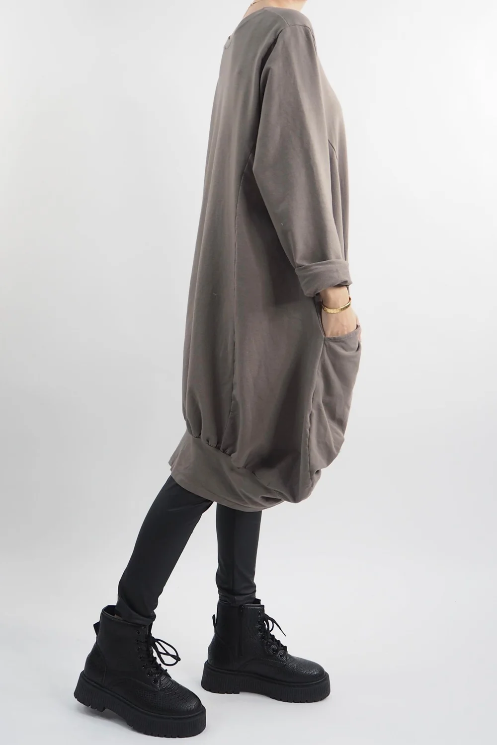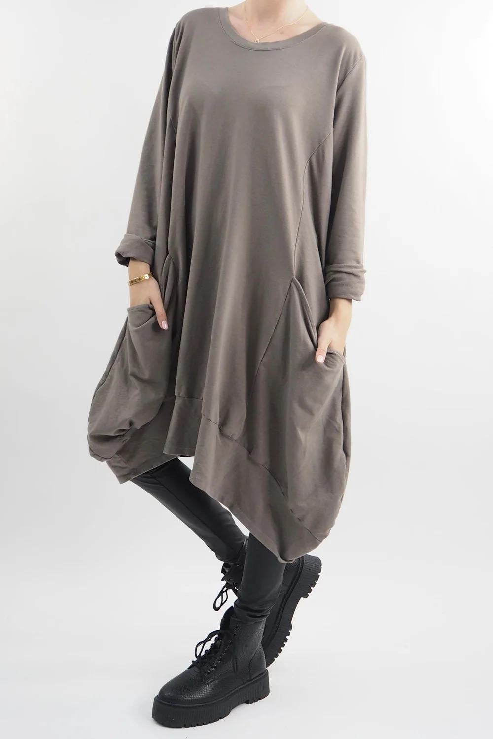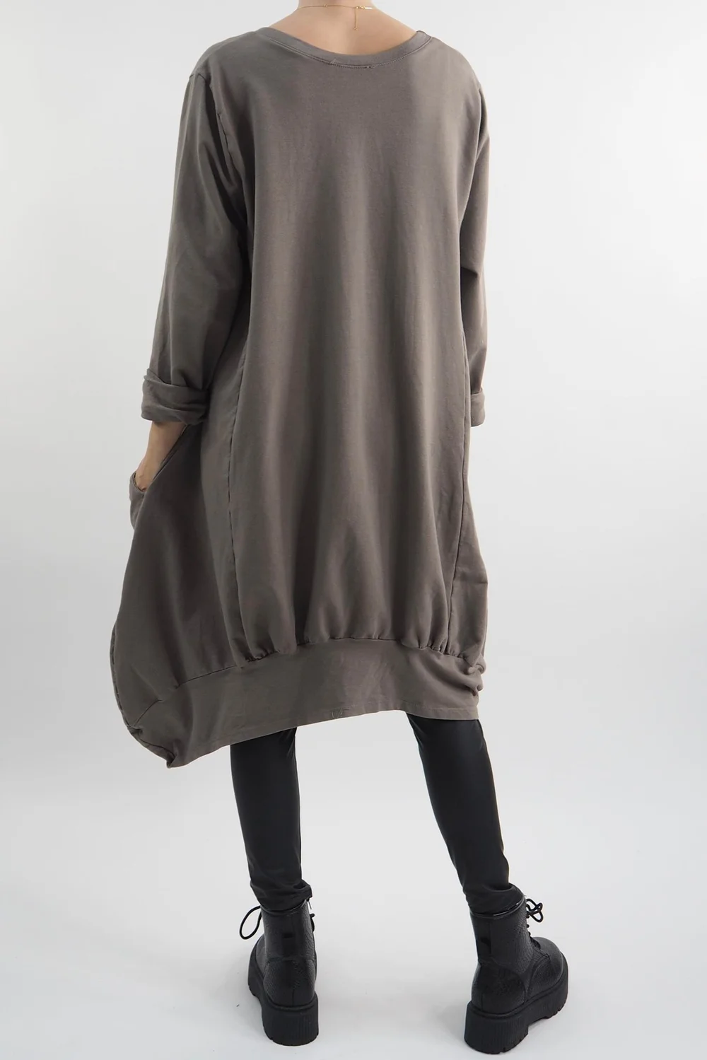 Elevate your fashion game with our exquisite Apres Dip Side Bubble Tunic in Earth brown tone from Made in Italy Clothing, a stretch jersey, bubble shape tunic is a statement piece that seamlessly blends style and comfort. The tunic’s generous pockets not only add a practical touch but also contribute to its contemporary allure. Its versatile design makes it the ultimate layering piece, whether paired with a pair of our classic Lagenlook cocoon pants for an office-chic ensemble or thrown over a pair of Pesca Leather Look Leggings for a night out. A timeless and effortlessly chic addition to any wardrobe, perfect for those who demand both style and ease in their everyday attire.