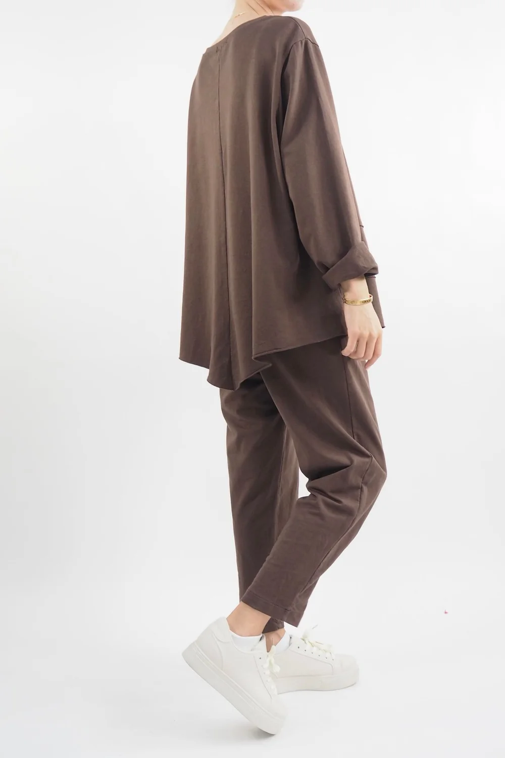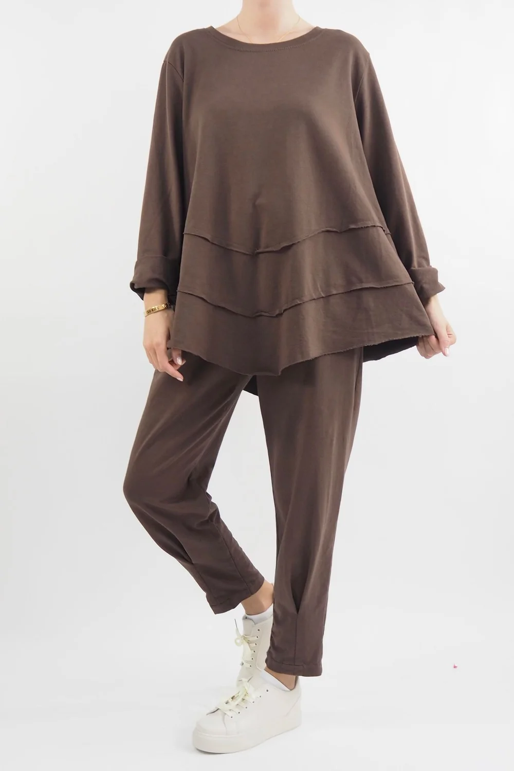 Introducing the epitome of effortless chic, to your wardrobe: our latest piece from Made in Italy clothing, the Made in Italy Apres Double V Raw Edge Top Truffle, brown tone, a lightweight cotton stretch top that redefines comfort and style. Crafted with meticulous attention to detail, this top boasts a double v raw edge paneling that brings a touch of sophistication. The cleverly designed raw edge detail adds a unique dimension to the silhouette, elevating it from the ordinary to the extraordinary. Whether you’re lounging at home, running errands, or meeting up with friends, our Apres Double V Raw Edge Top effortlessly transitions from casual to chic, making them a must-have addition to your wardrobe.