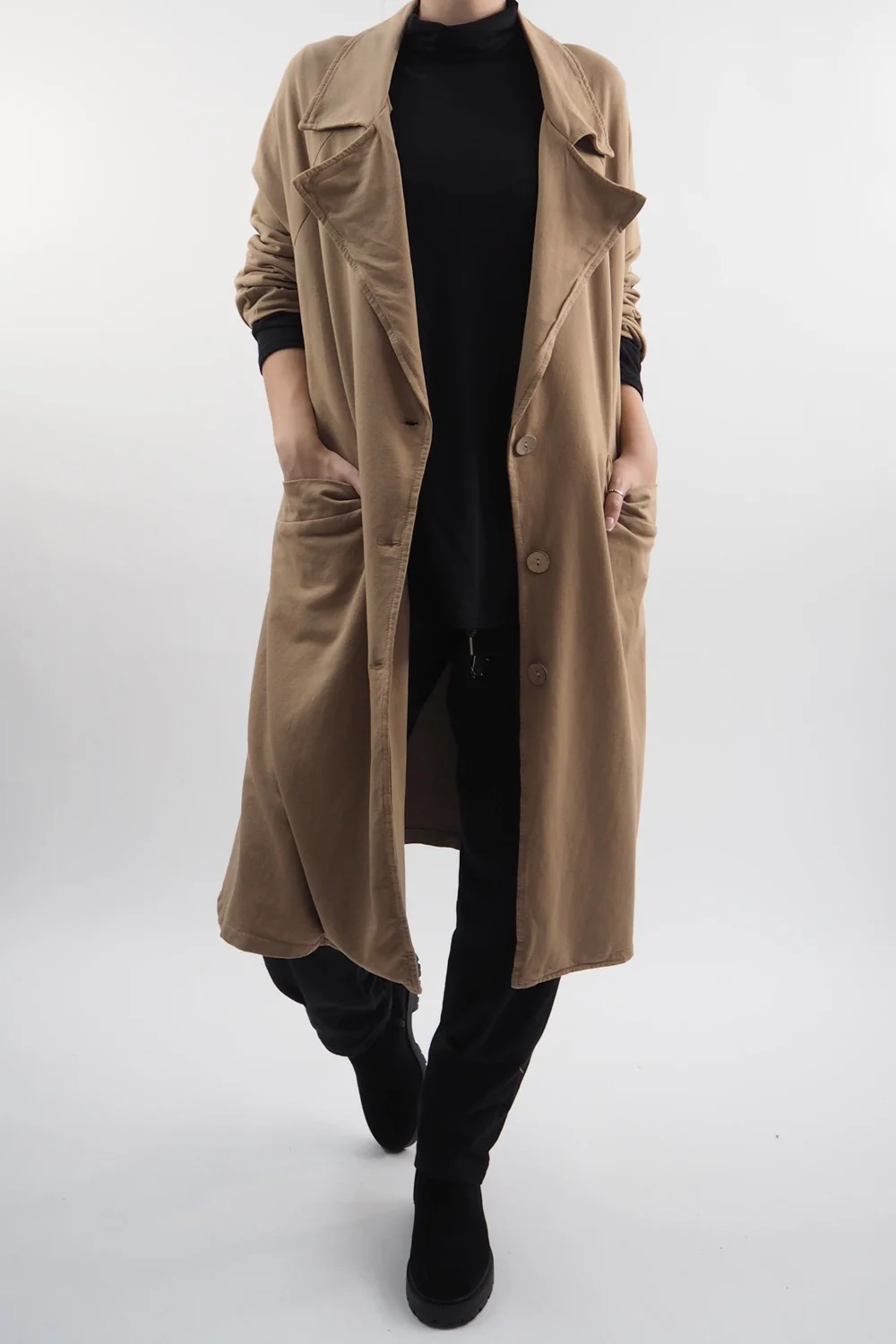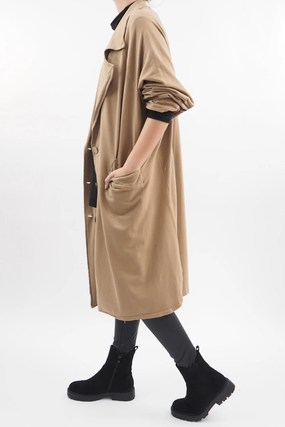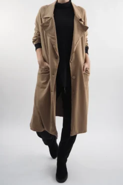 Embrace autumn with our Made in Italy Apres Longline Relaxed Blazer Toast – the perfect jacket for those crisp, golden-hued mornings. Made with meticulous artistry, this jacket seamlessly blends style and comfort, offering a warm embrace as you step into the season. The soft cotton fabric exudes rustic charm, while the tailored cut ensures a flattering silhouette. With its versatile design, this jacket effortlessly accompanies both casual denim and tailored trousers, making it a must-have for your fall wardrobe.Â