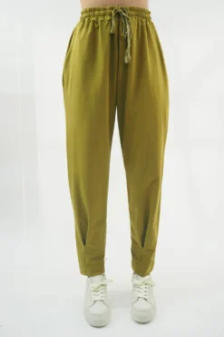 Introducing the epitome of effortless chic, to your wardrobe: our latest piece from Made in Italy clothing, the Made in Italy Apres Skinny Dart Jogger in Oil, olive-yellow green tone, a lightweight cotton stretch skinny jogger that redefines comfort and style. Crafted with meticulous attention to detail, this jogger boasts a skinny fit that brings a touch of sophistication. The cleverly designed dart detail adds a unique dimension to the silhouette, elevating it from the ordinary to the extraordinary. Whether you’re lounging at home, running errands, or meeting up with friends, our Apres Skinny Dart Jogger effortlessly transitions from casual to chic, making them a must-have addition to your wardrobe.