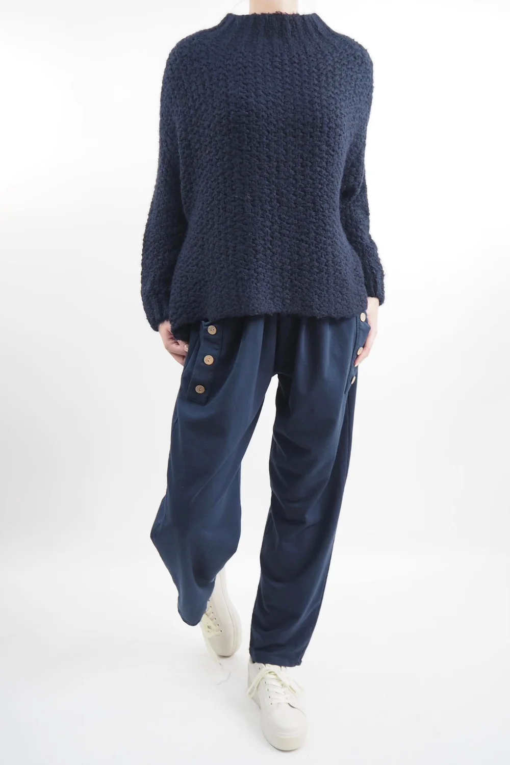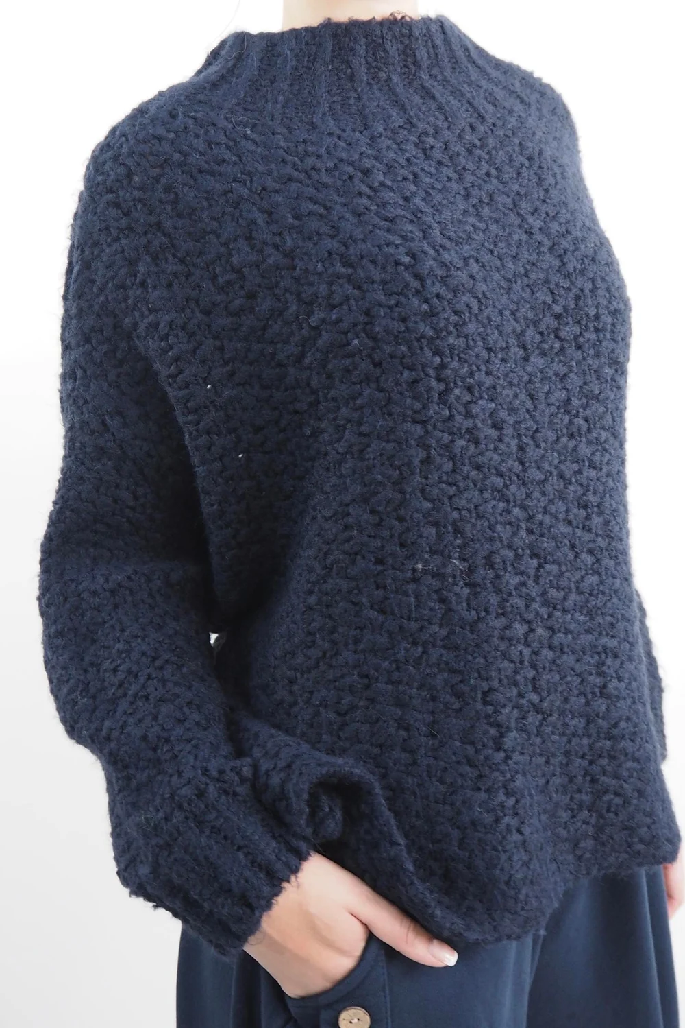 Get ready to cosy up in style this season with the new Made in Italy Arlo Basket Knit Top in a Ink, dark blue tone. This comfortable knit will beocme your go to knit of the season. The oversized silhouette not only embraces the essence of laid-back luxury but also keeps you snug and stylish during those crisp autumn days and chilly winter nights. It’s the perfect embodiment of relaxed sophistication, ensuring you’ll turn heads wherever you go. So, indulge in warmth and fashion this year by making this exquisite piece your go-to choice for effortless elegance.