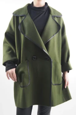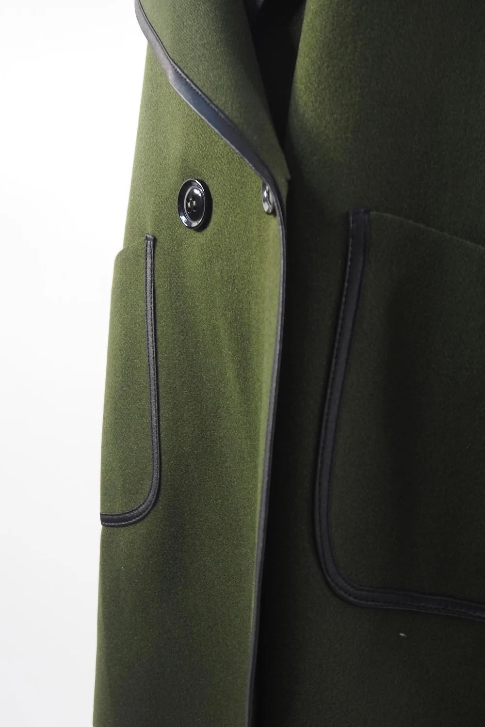 Introducing the epitome of timeless sophistication: our Made in Italy Belgravia Quant Jacket in Olive, green tone. Crafted from sumptuous fabric, the double breasted front creates structure in the perfect laundry b way, evoking an air of understated luxury. Whether styled with a pair of our Pesca leather look leggings or Bodhi slim-leg trousers, this promises to elevate your wardrobe to new heights of sophistication.