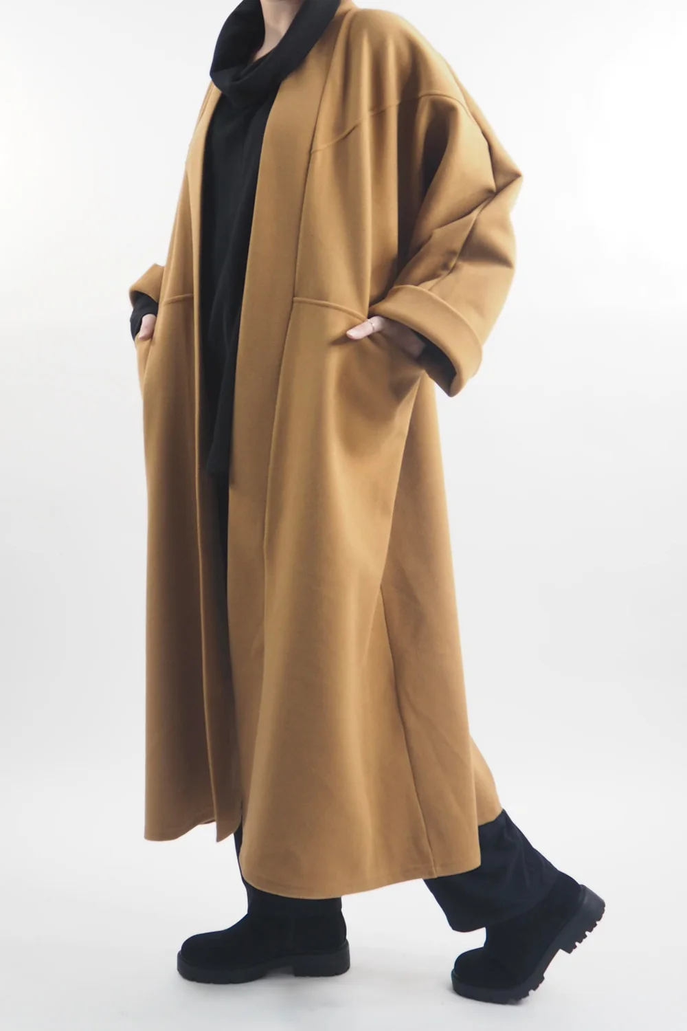 Elevate your post-pilates elegance with our exquisite Made in Italy Belgravia Relaxed Coat in Classic Camel tan brown, a versatile piece that effortlessly combines comfort and style. This coat is the epitome of laid-back luxury, making it the ideal choice for slipping into for a day out. Its loose, flowing silhouette not only provides an easy fit but also adds an element of graceful movement to your every step.
