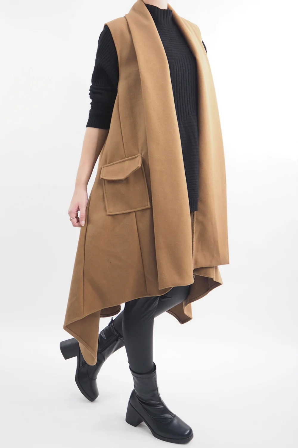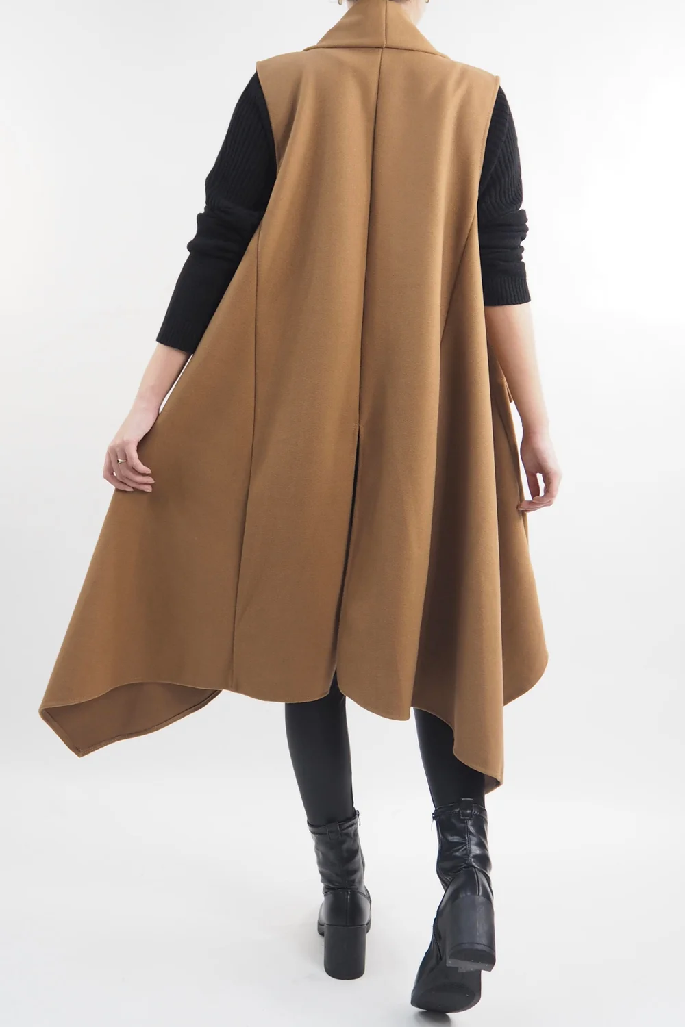 Introducing the epitome of timeless elegance, our Made in Italy Belgravia Weekend Gilet in Camel, tan brown tone, this classic, longline, trapeze shape gilet is a must-have addition to your wardrobe. Its elongated silhouette not only flatters all body types but also provides ample coverage, making it the perfect choice for layering. Whether you’re aiming for a chic and polished ensemble, styled with our Pesca leather-look leggings or opting for a more relaxed, athleisure-inspired look, this gilet proves its adaptability as a fashion essential.