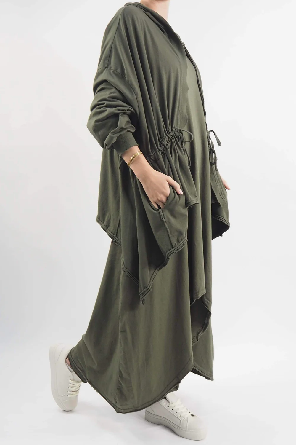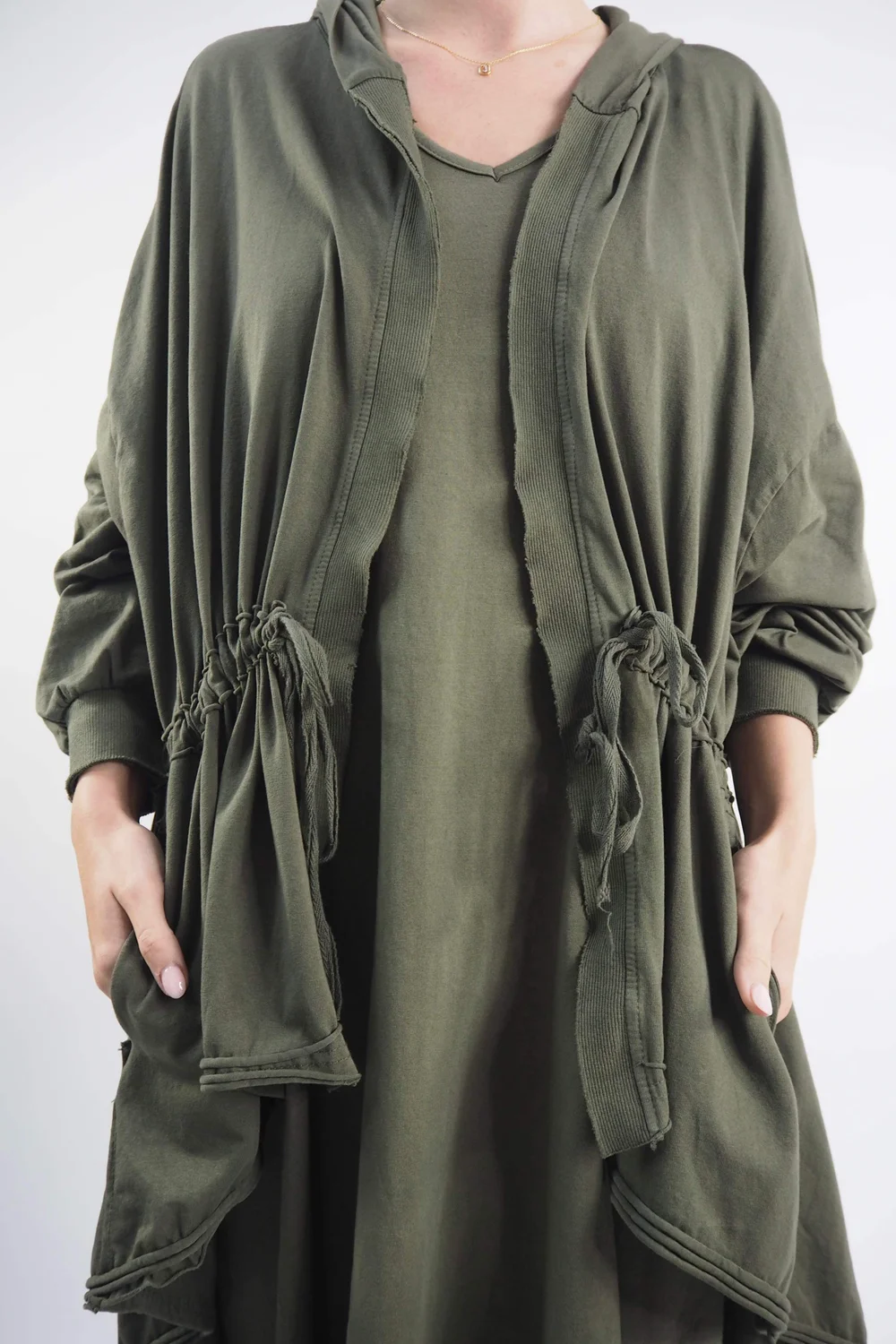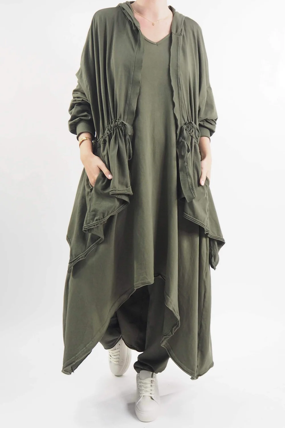 Introducing the ultimate must-have for this season’s wardrobe: our Made in Italy Bodhi Goody Hoodie in Classic Bonsai, khaki green, a super cool, seam detail, cinch waist hoodie crafted in a lightweight stretch cotton that effortlessly blends style and comfort. Style with our Made in Italy Bodhi Archie Dress & Bodhi Slim Leg Pants for the perfect Lagenlook look.