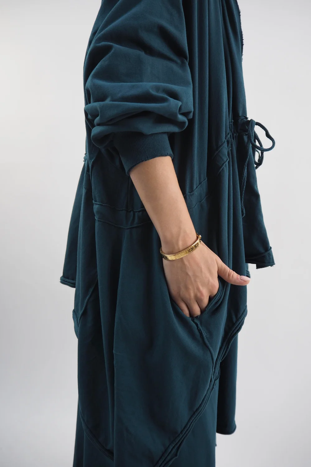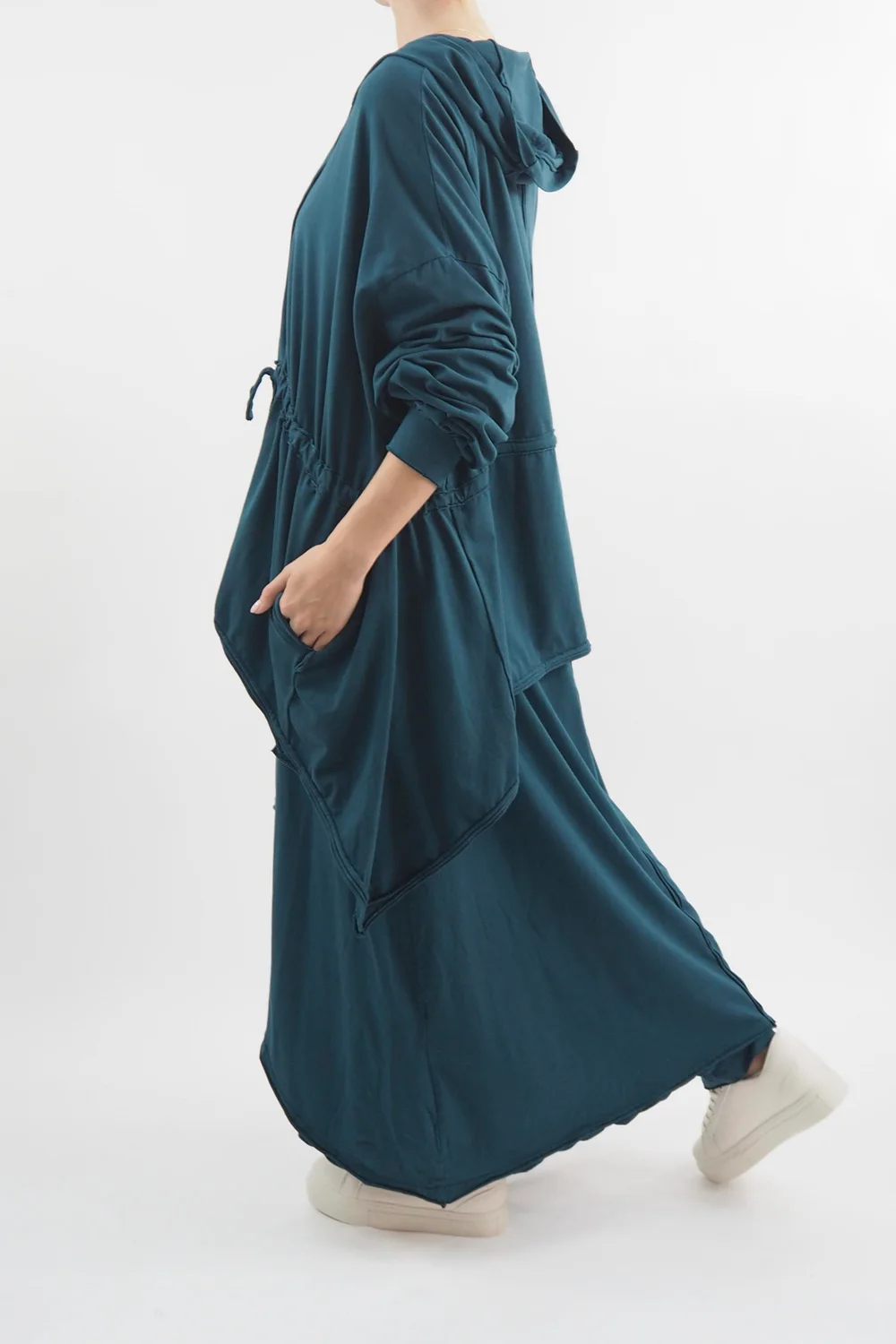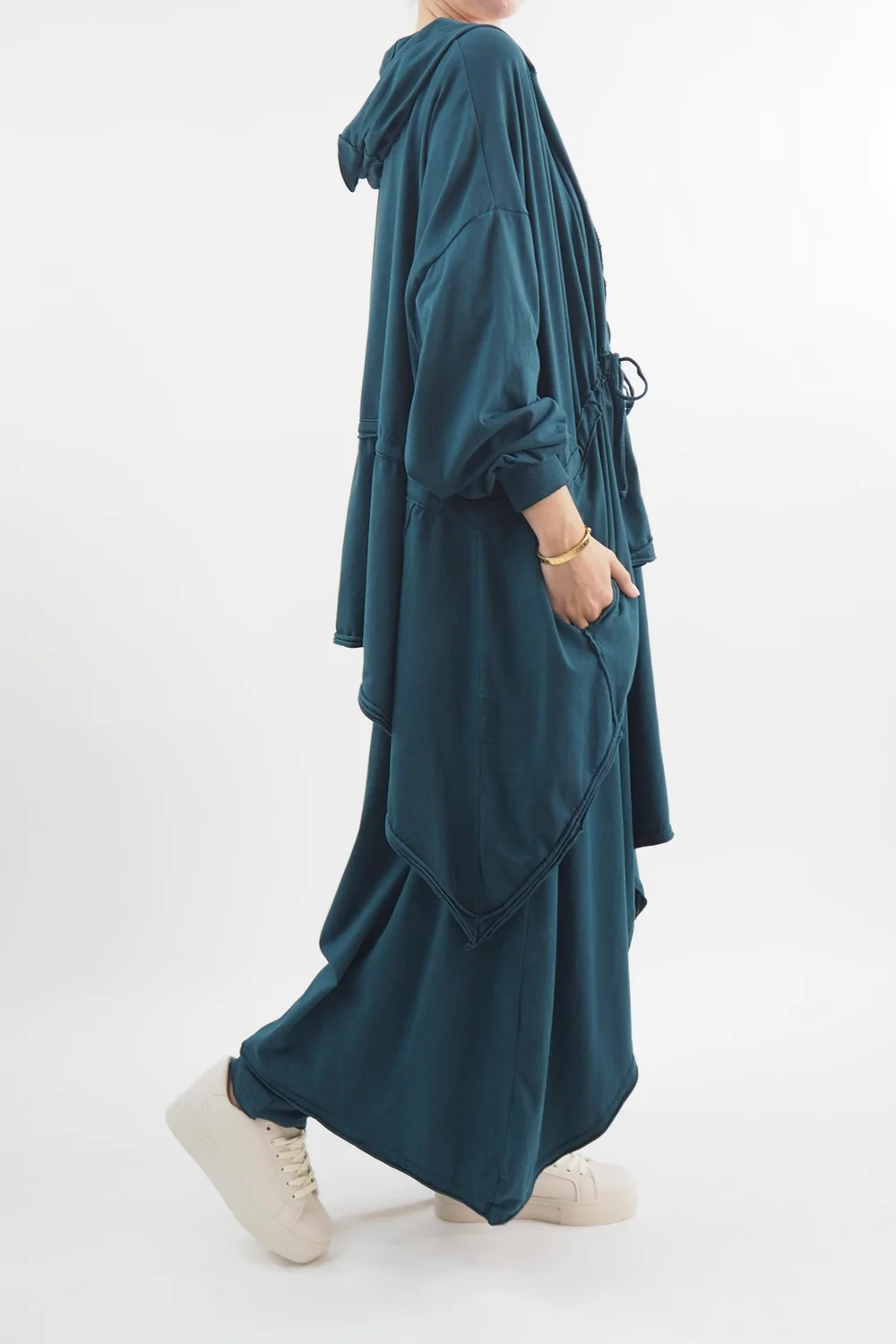 Introducing the ultimate must-have for this season’s wardrobe: our Made in Italy Bodhi Goody Hoodie in Dark Lagoon, teal blue tone, a super cool, seam detail, cinch waist hoodie crafted in a lightweight stretch cotton that effortlessly blends style and comfort. Style with our Made in Italy Bodhi Archie Dress & Bodhi Slim Leg Pants for the perfect Lagenlook look.