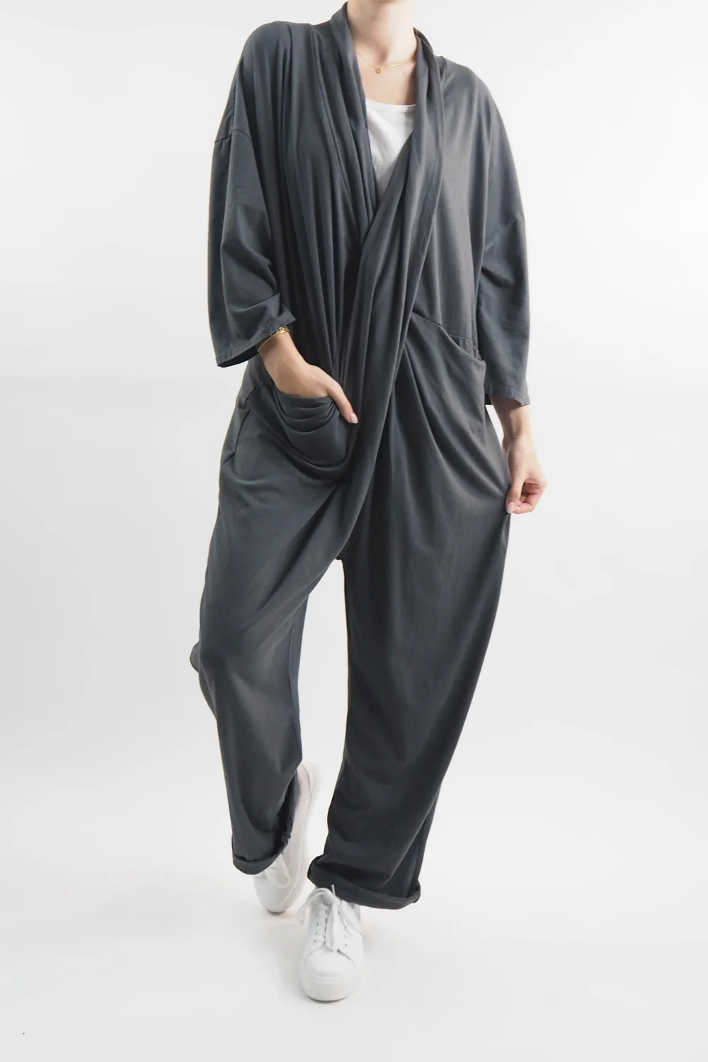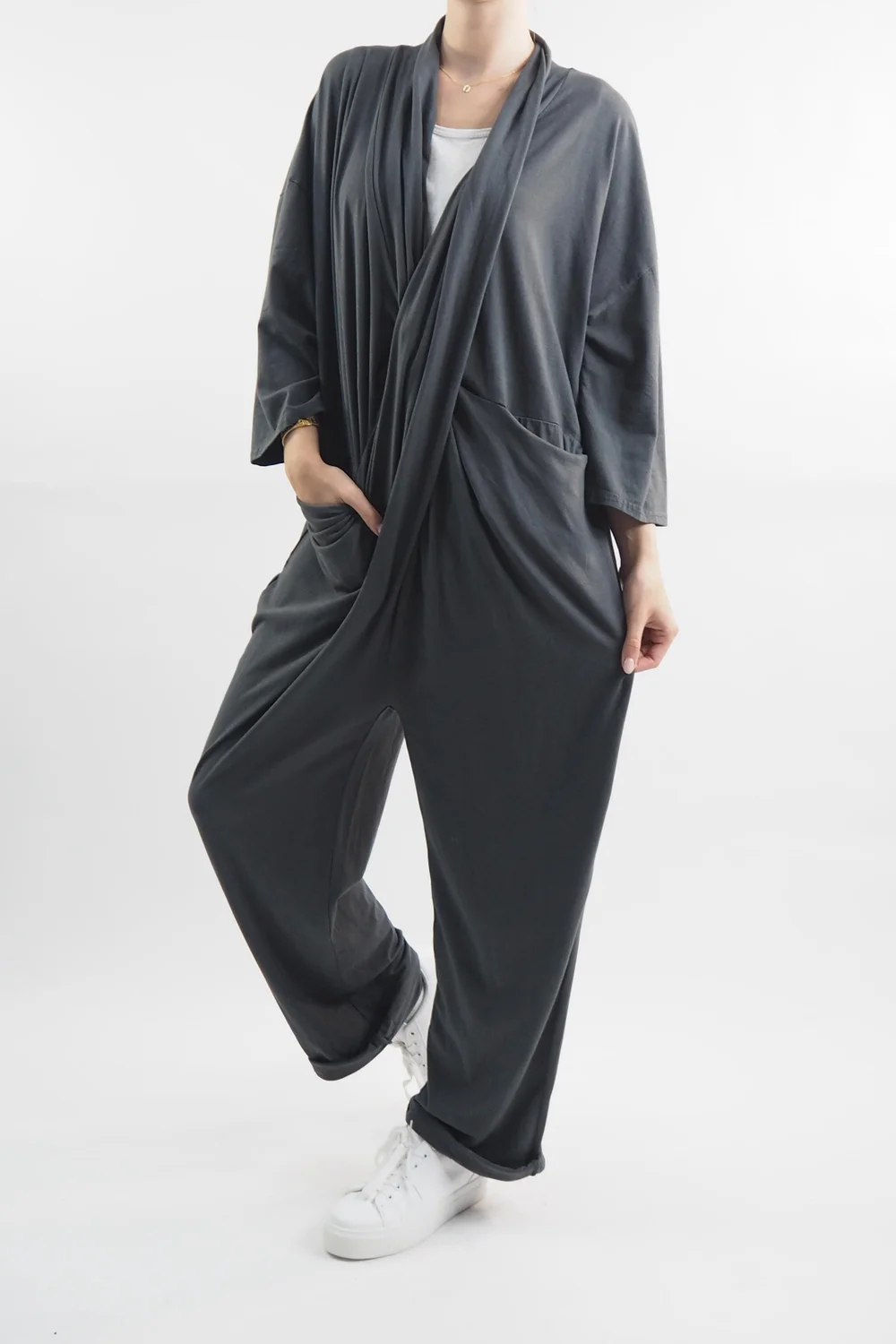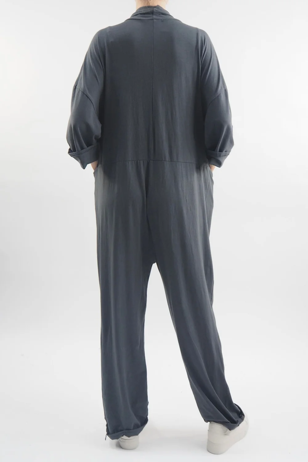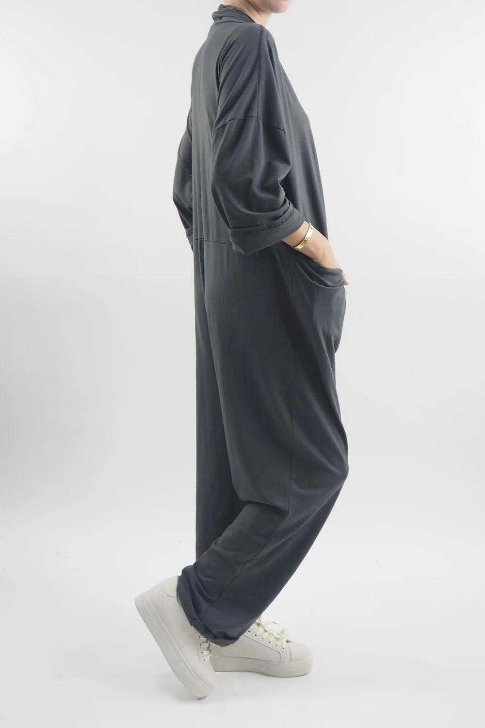 The Made in Italy Bodhi Twist Jumpsuit in Shadow Grey embodies effortless sophistication with its exquisite design elements. The front twist detail adds a touch of intrigue to the classic jumpsuit silhouette, creating a focal point that’s both flattering and chic. Its practicality is elevated by the inclusion of pockets, seamlessly blending style and convenience. The long sleeves provide a sense of versatility, making it suitable for various occasions and seasons. Crafted with meticulous attention to detail, this jumpsuit exemplifies the timeless elegance and craftsmanship associated with Italian fashion, making it a must-have addition to any discerning wardrobe.