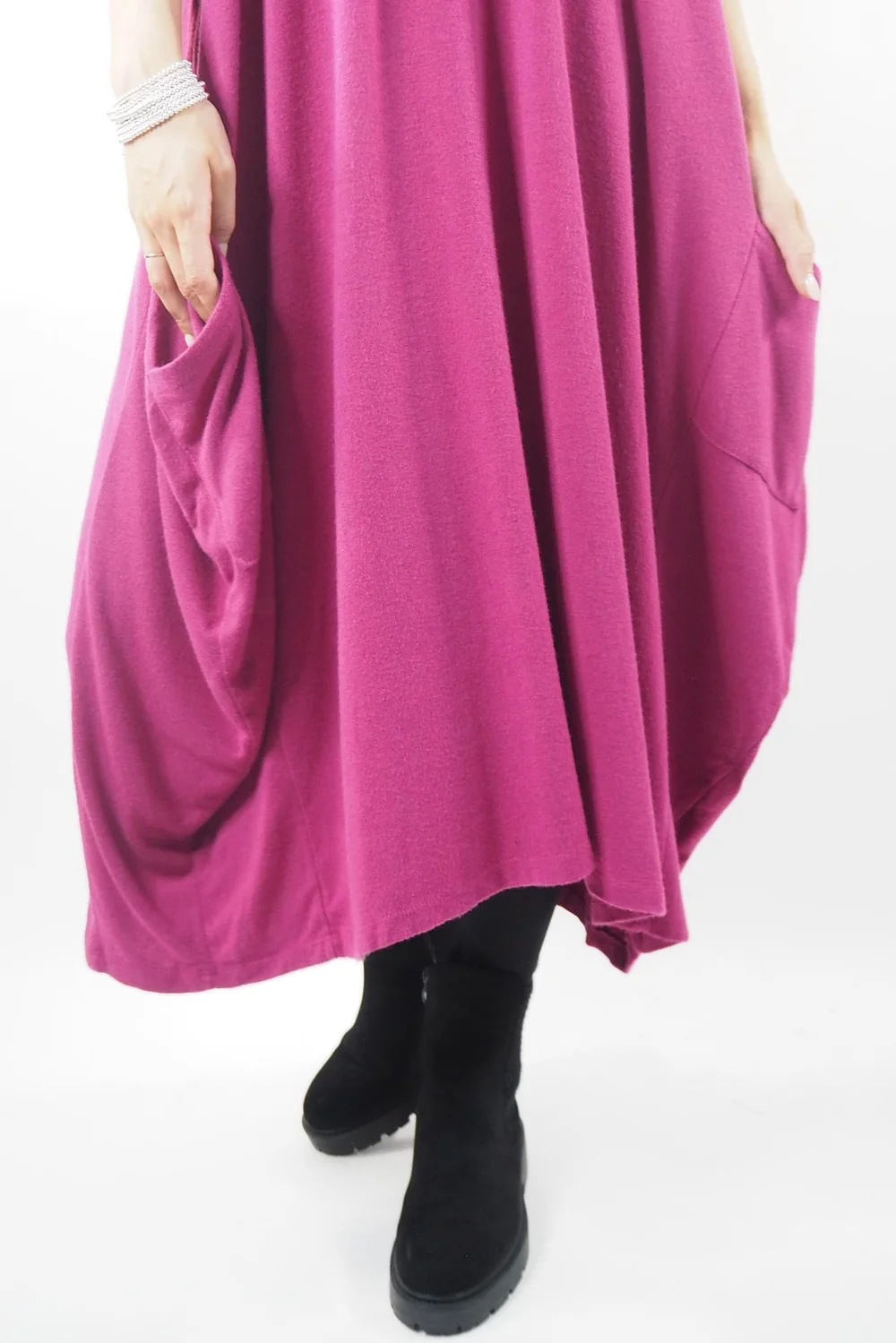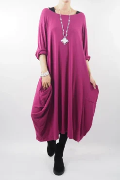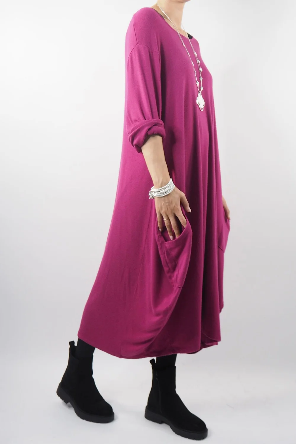 Made In Italy Chalet Classic Cocoon Knit Dress Magenta Pink