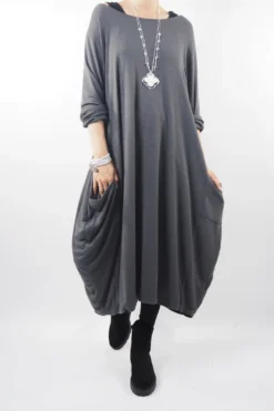 Made In Italy Chalet Classic Cocoon Knit Dress Shadow Grey