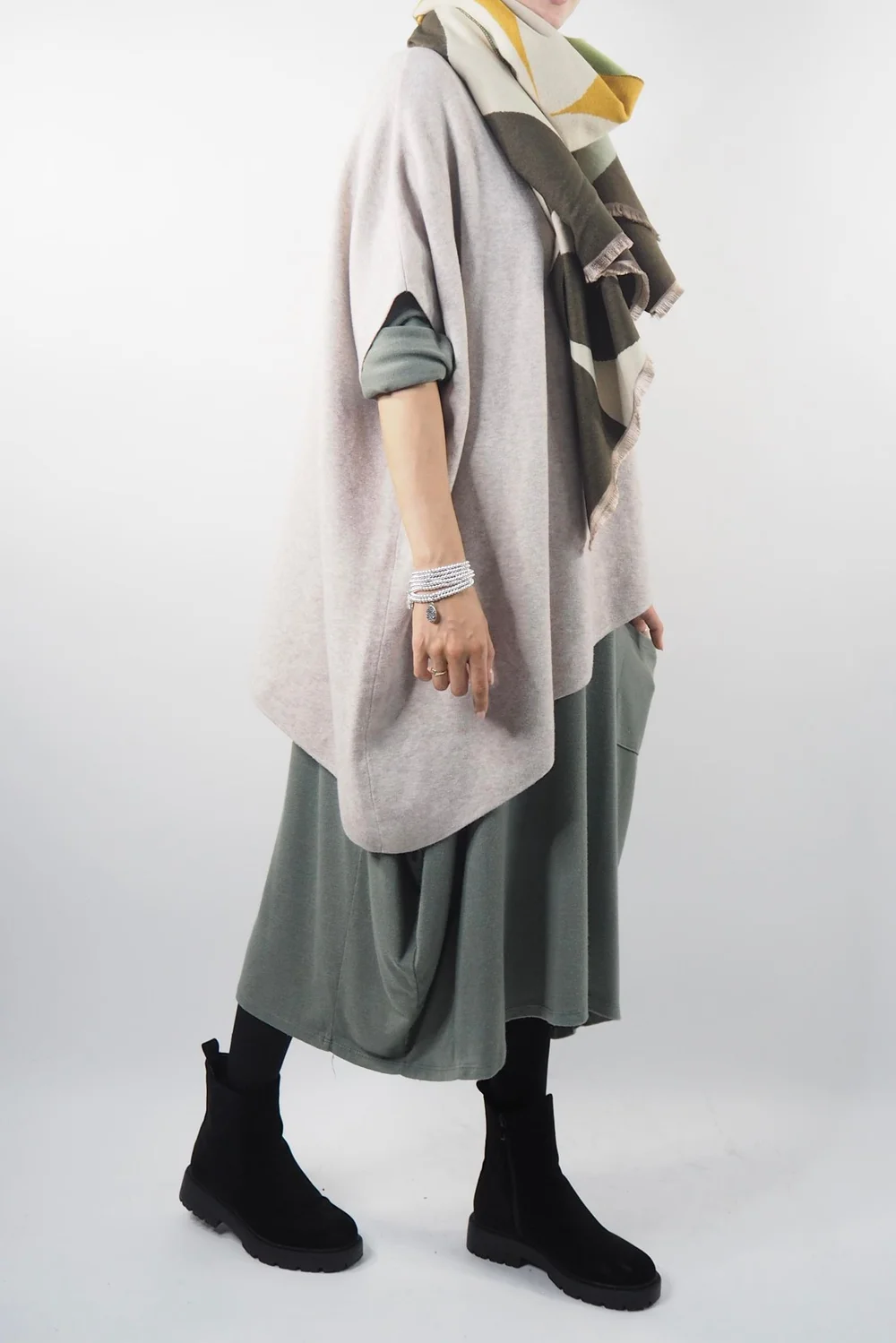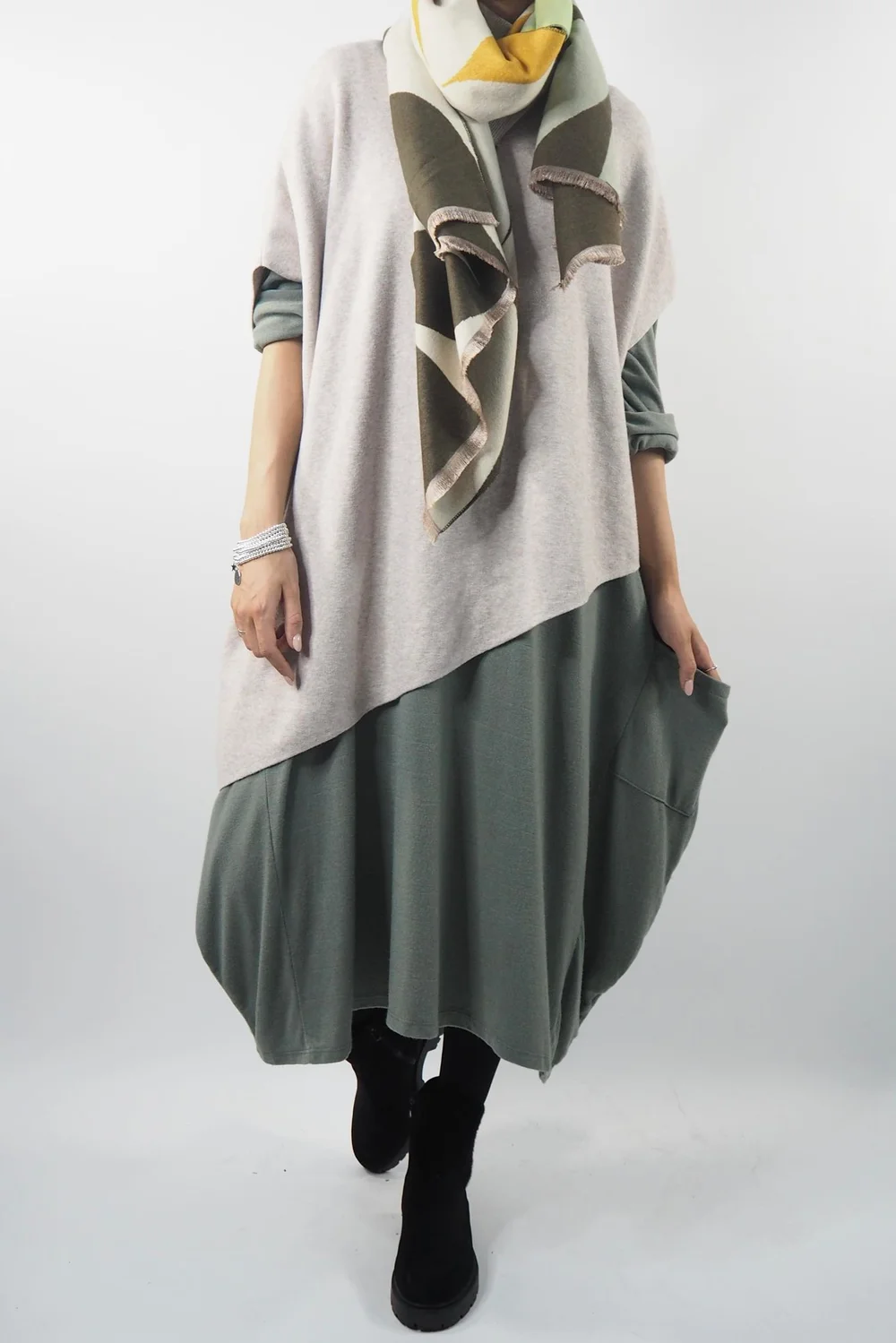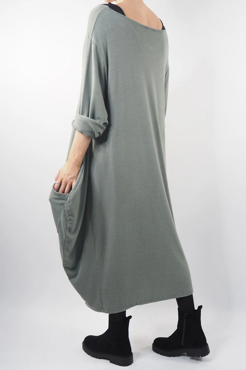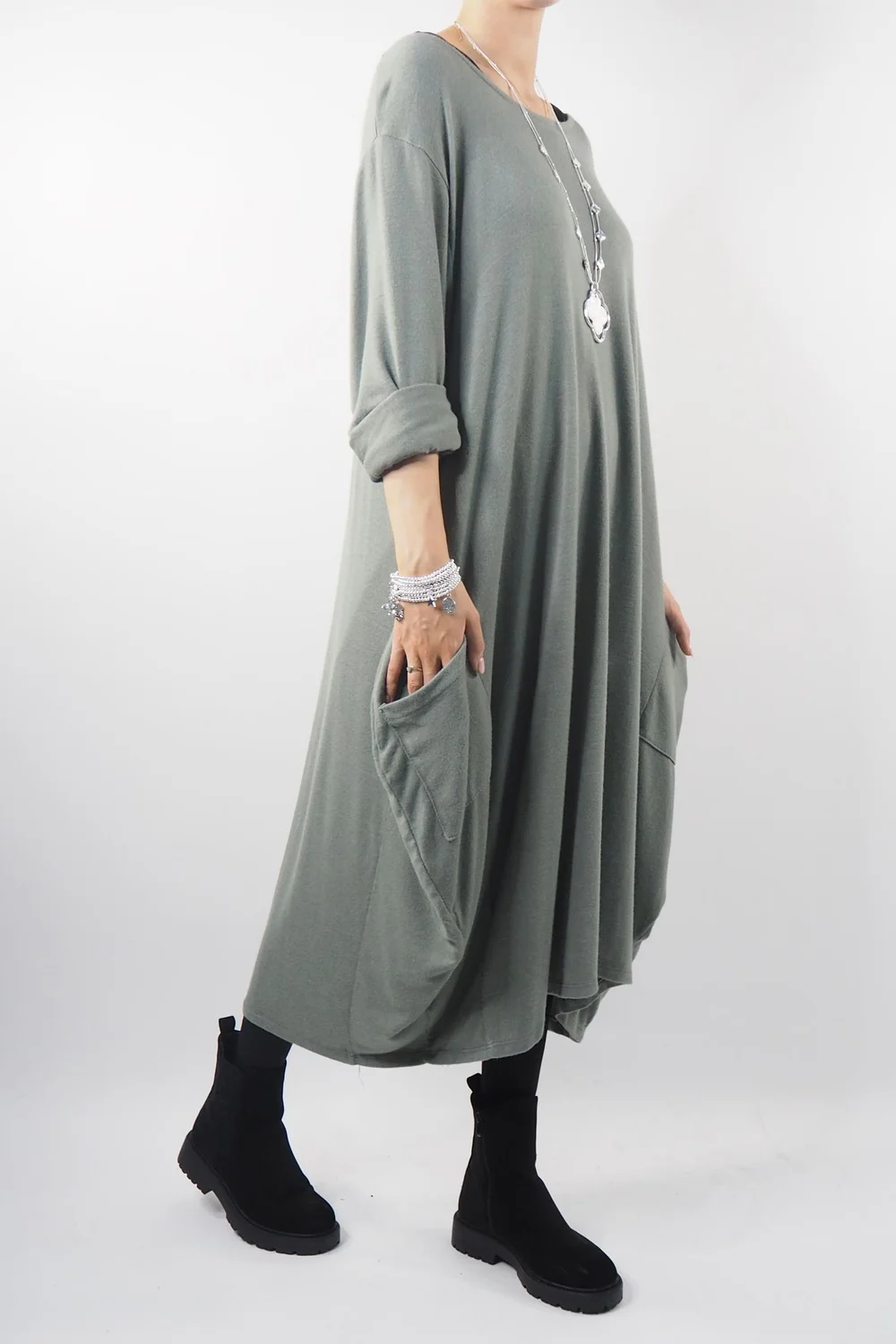 Introducing the epitome of elegance and comfort: the Chalet Classic Cocoon Knit Dress in Khaki, soft green tone, from Made in Italy Clothing. A true wardrobe essential, this one-size-fits-all marvel is the perfect piece, regardless of your body shape. Crafted with the utmost precision, this ethereal creation boasts a lightweight design that lends itself perfectly to the art of layering. A piece that promises to be your trusty companion for every season, this cocoon dress is a seamless fusion of comfort and style. Style with tights and boots for the perfect look.