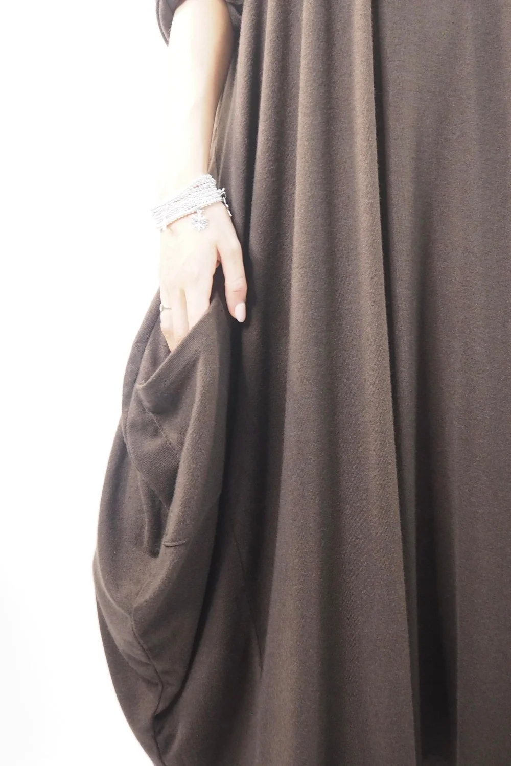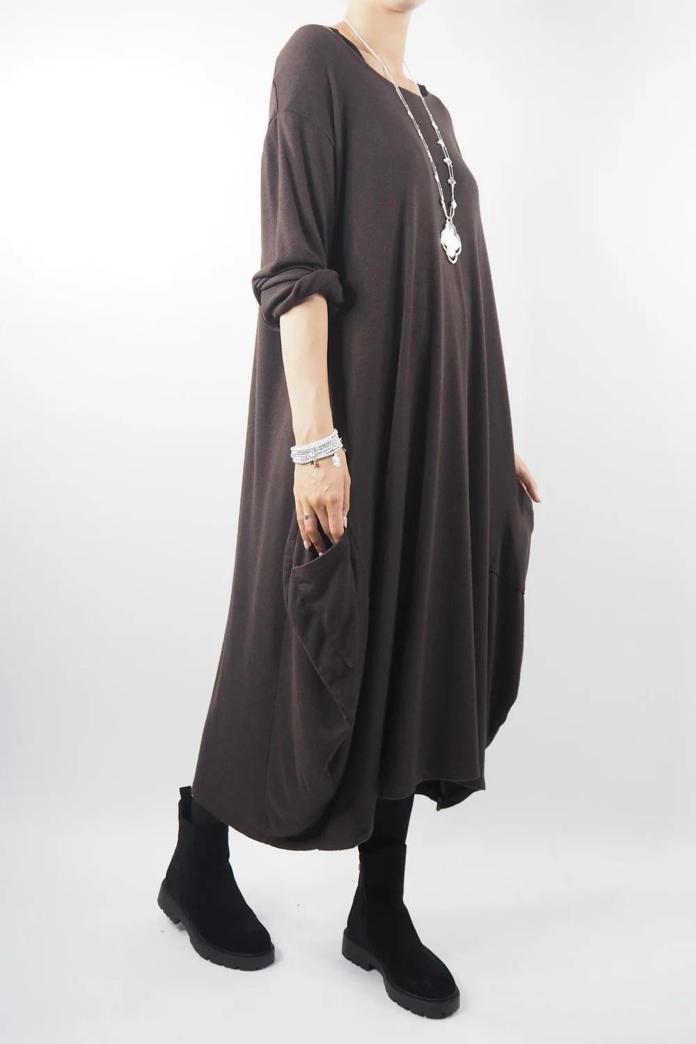 Introducing the epitome of elegance and comfort: the Chalet Classic Cocoon Knit Dress in Umber, dark brown tone, from Made in Italy Clothing. A true wardrobe essential, this one-size-fits-all marvel is the perfect piece, regardless of your body shape. Crafted with the utmost precision, this ethereal creation boasts a lightweight design that lends itself perfectly to the art of layering. A piece that promises to be your trusty companion for every season, this cocoon dress is a seamless fusion of comfort and style. Style with tights and boots for the perfect look.