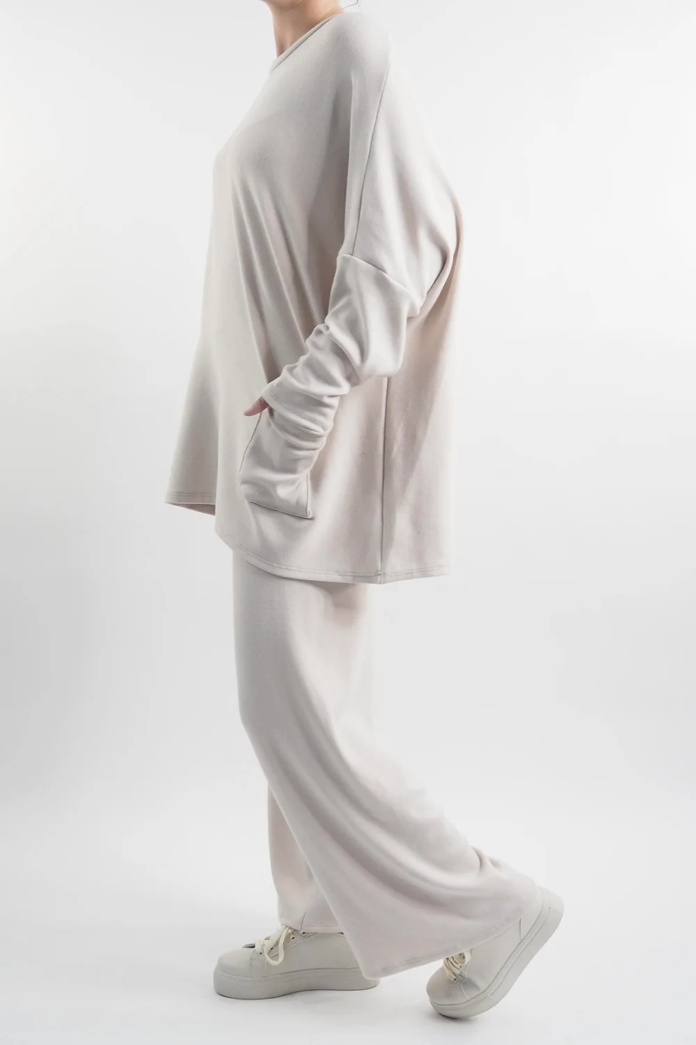 Made In Italy Chalet Pocketed Soft Knit Set Stone