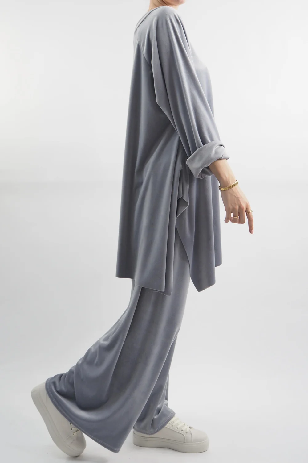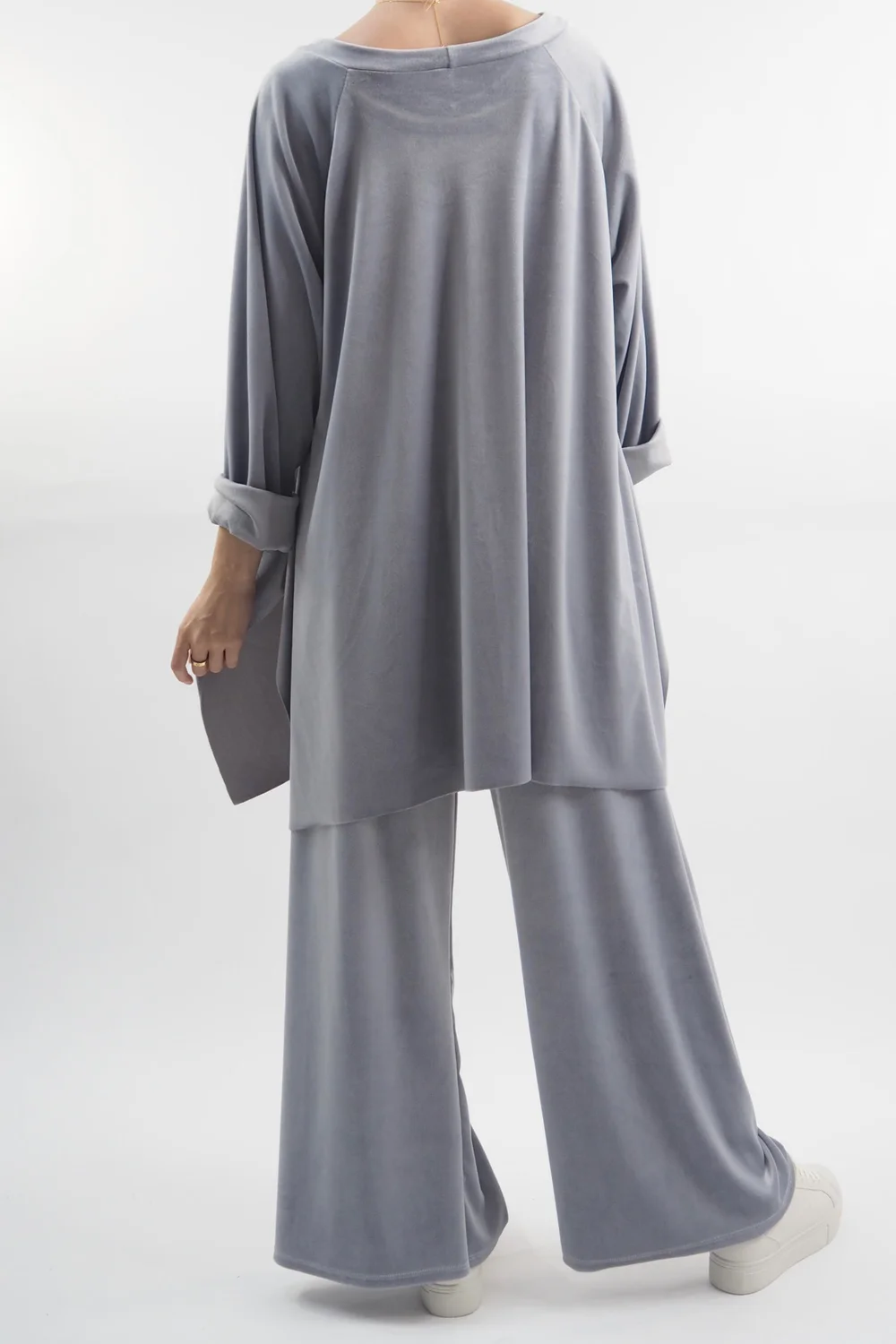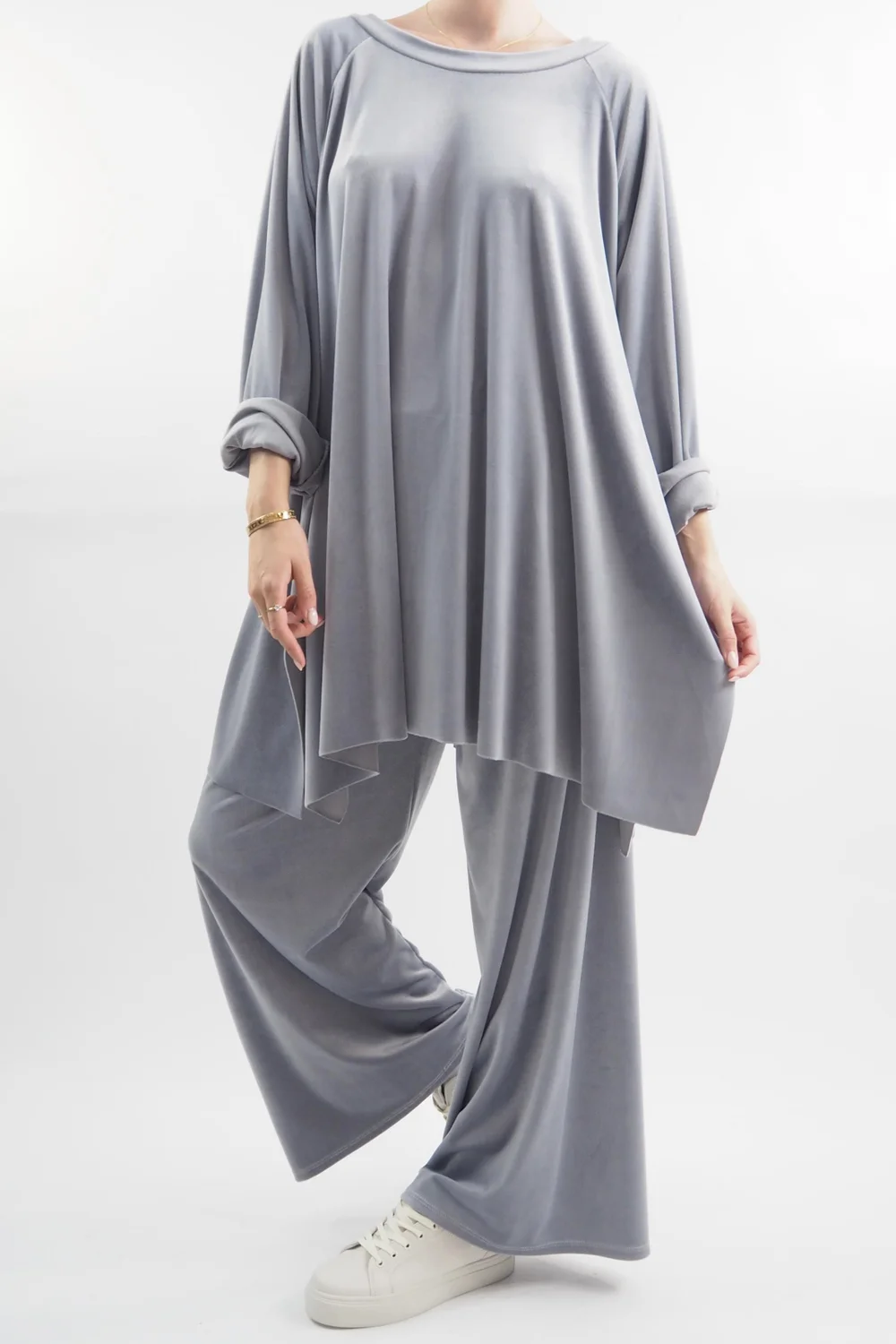 Indulge in ultimate comfort and style with our luxurious Made in Italy Chalet Soft Stretch Velour Set in Dove, light grey tone – the epitome of chic loungewear! Crafted with a plush velvety texture, this set is designed for those who refuse to compromise on fashion even during downtime. The relaxed-fit top features a flattering round neckline, ensuring a flattering silhouette while keeping you cosy. Paired with the matching velour pants, it’s an ensemble that effortlessly combines comfort and elegance. Whether you’re curled up with a book or sipping a latte at home, this set promises to elevate your lounging experience to a whole new level of glamour and relaxation.