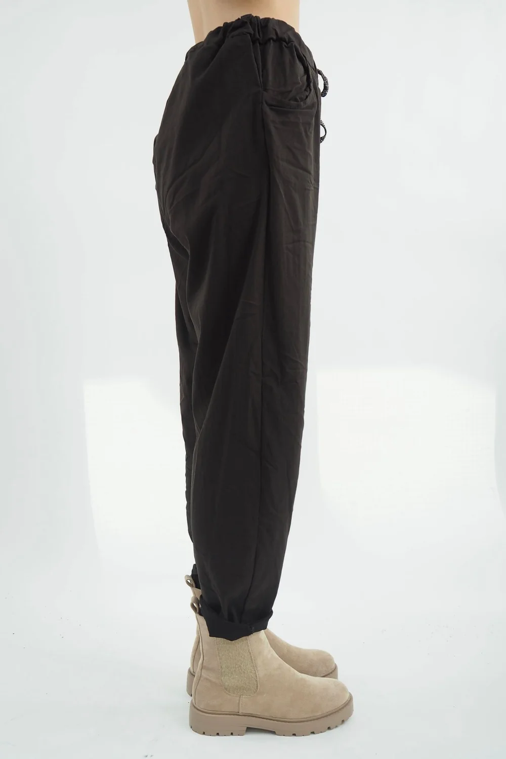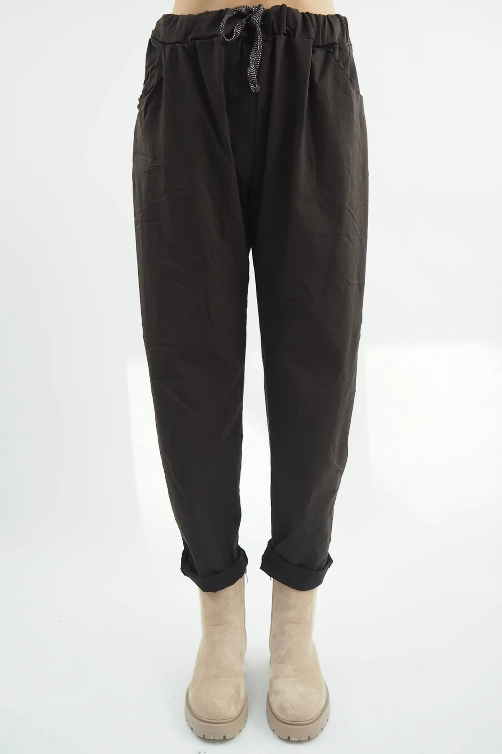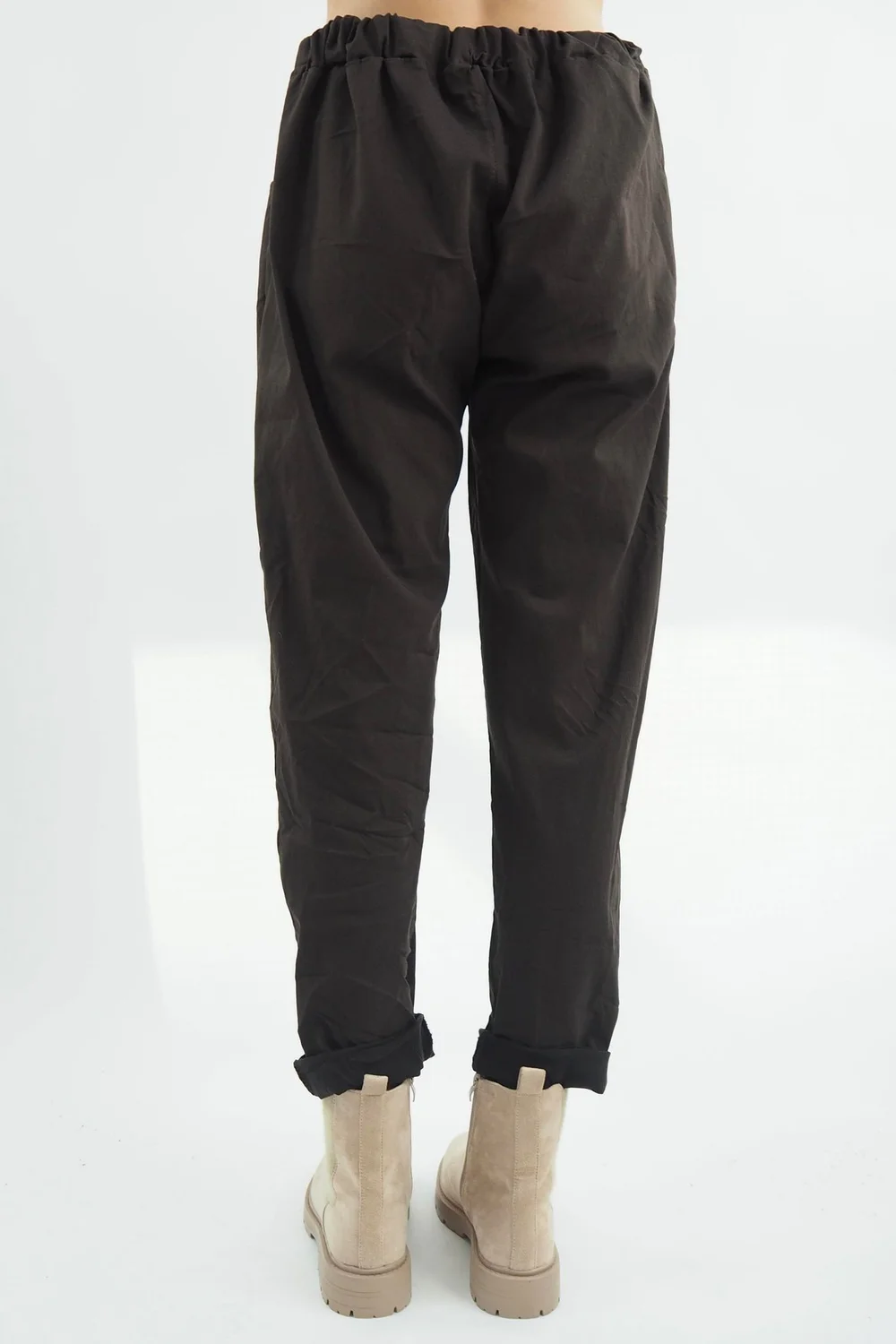 Introducing the epitome of effortless style and comfort : our Made in Italy Classic Magic Trousers in sleek Truffle, dark brown tone. These extraordinary trousers are a game-changer, seamlessly blending unparalleled comfort and timeless elegance. Our Made in Italy Classic Magic Trousers possess a remarkable elasticity that adapts to your every move, making them a dream to wear throughout the day and night.