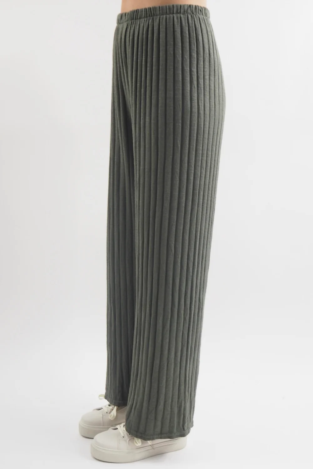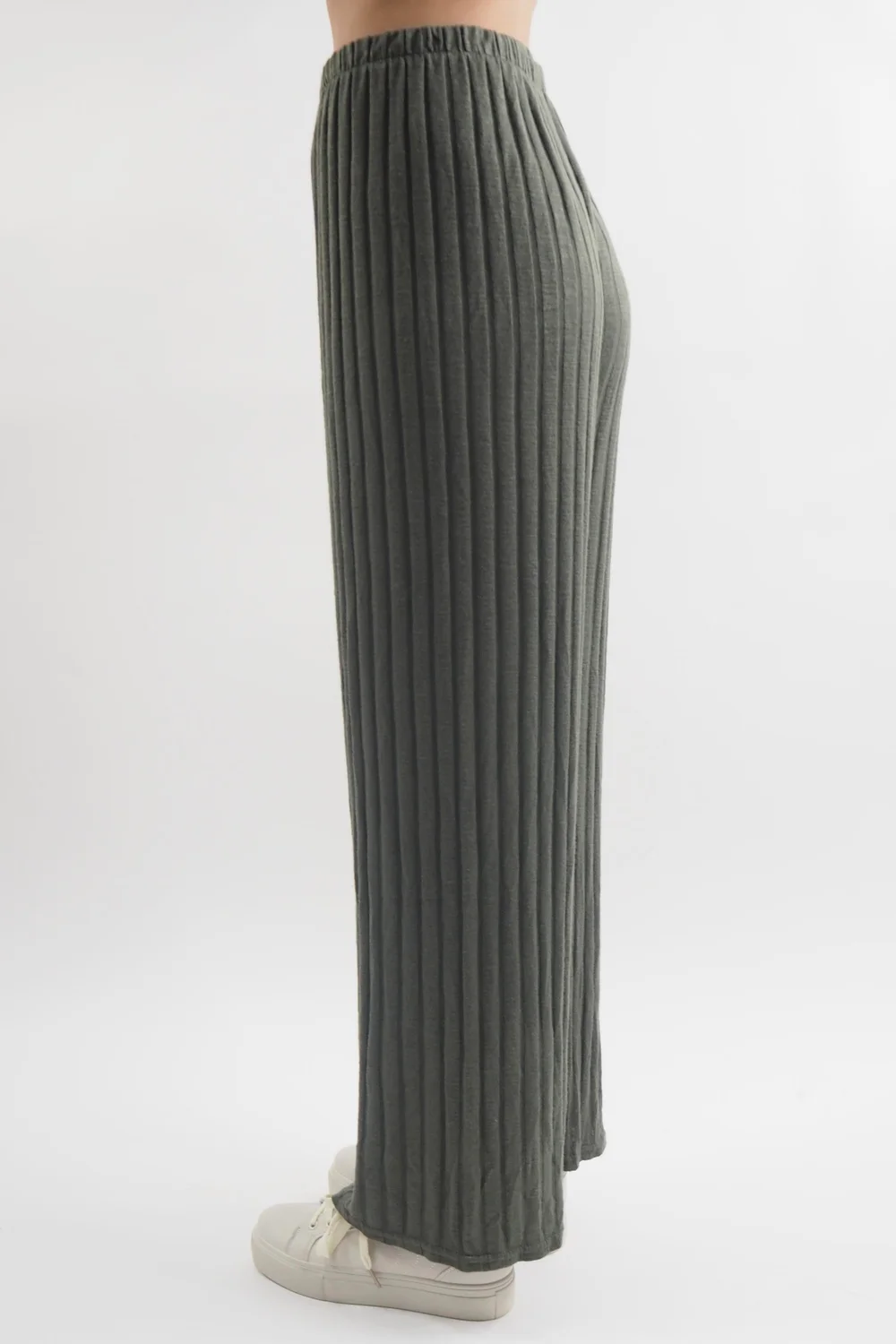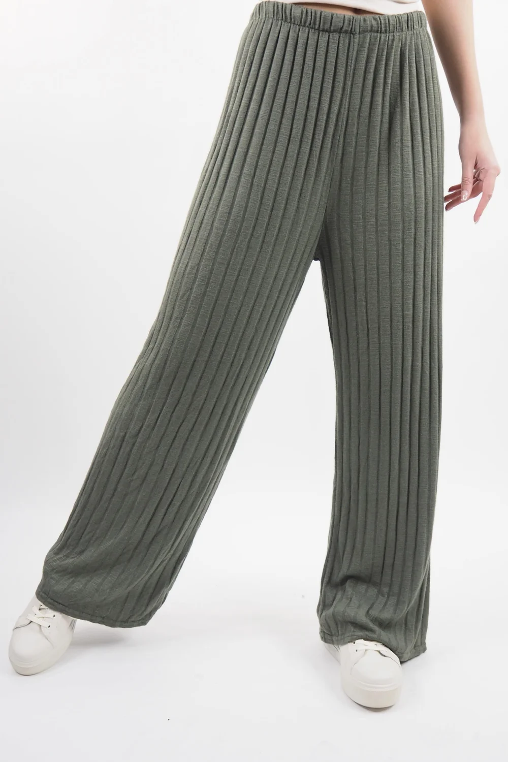 Made In Italy Classic Super Soft Ribbed Fine Knit Pant Khaki