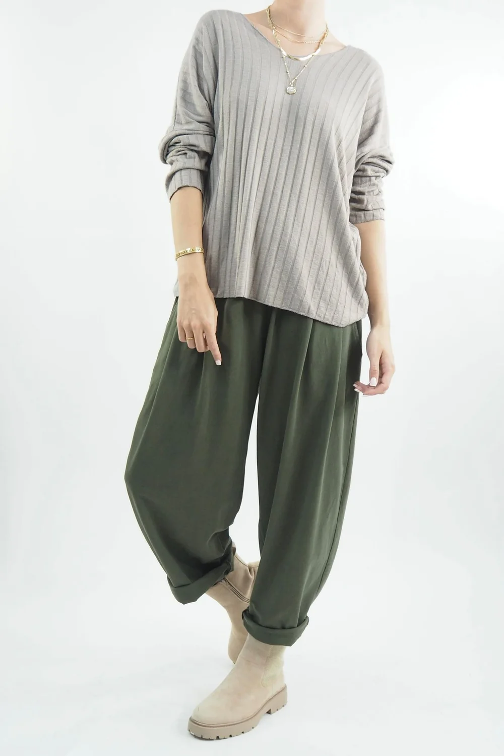 Indulge in the luxurious embrace of our Made in Italy Classic Super Soft Ribbed Fine Knit Top in Mocha, beige brown tone, a super soft, ribbed, stretch, fine knit that redefines comfort and style. Elevate your wardrobe with this wardrobe staple that seamlessly combines coziness and sophistication. It’s the perfect choice for those who demand both comfort and style in their daily wear.
