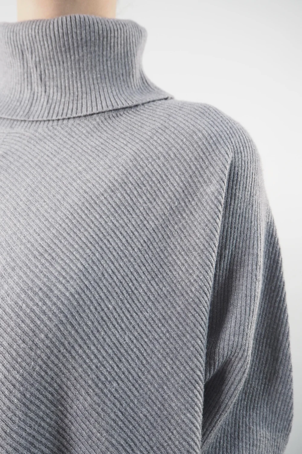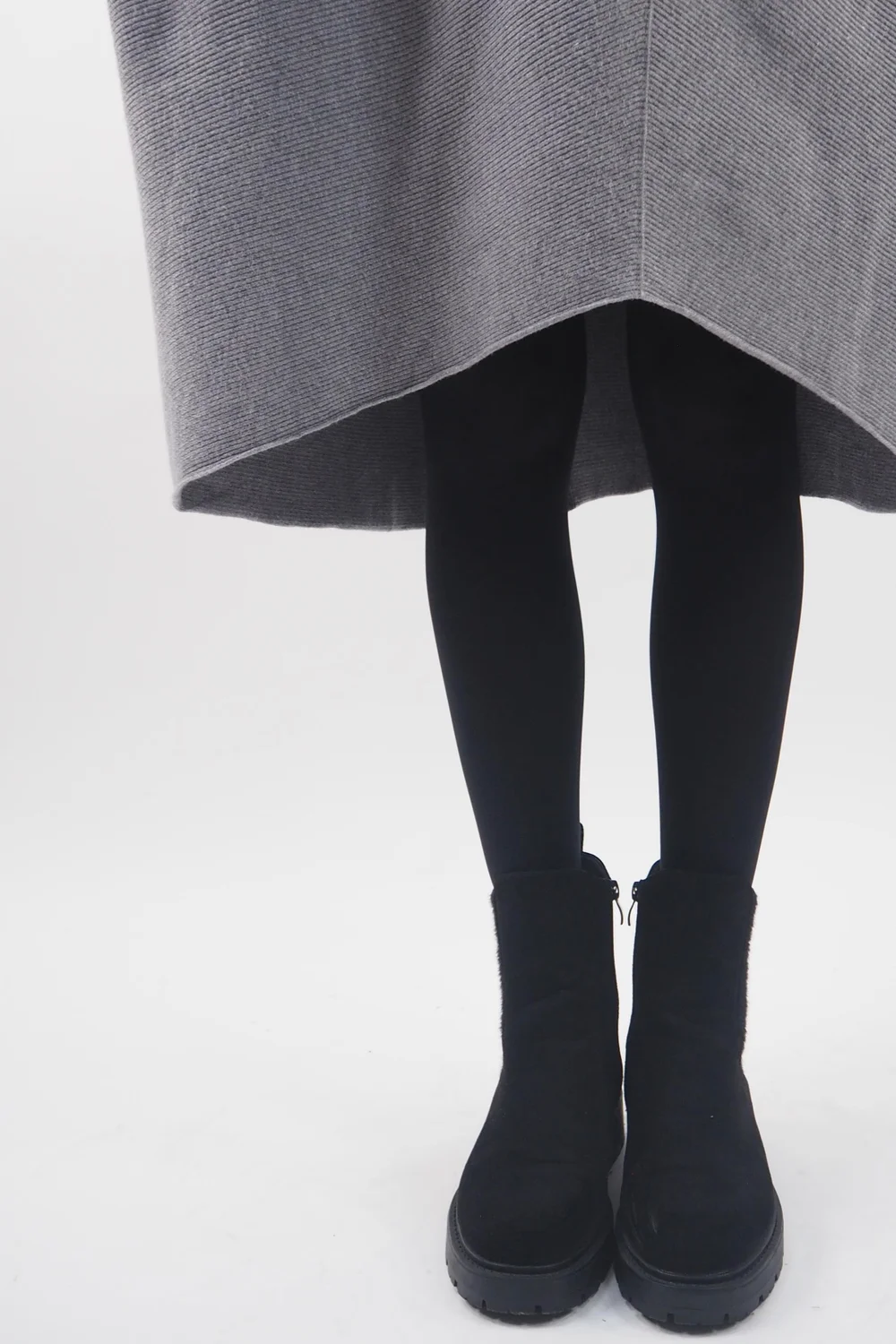 Elevate your winter wardrobe with the epitome of cosy chic: the Conrad Archie Le Sac Dress in Slate, grey tone, from Made in Italy clothing. Crafted to perfection, this luxurious piece exudes an air of understated elegance that will keep you snug and stylish throughout the colder months. The arched hemline adds a touch of drama, while the polo neck provides both warmth and a hint of timeless sophistication. Style with a pair of our Cosy Leg Leggings and Boots for the perfect autumn-winter look.Â