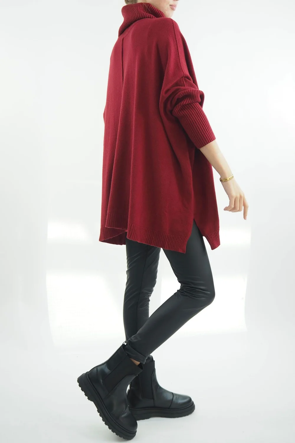 Picture yourself wrapped in the epitome of comfort and style with our latest obsession: the Conrad Classic Blanket Knit in WInter Berry red tone, from Made in Italy clothing. This cosy and soft knit piece effortlessly combines warmth and style, making it an essential addition to your autumn and winter wardrobe. Its oversized silhouette embraces you in a gentle embrace, perfect for those chilly days when you crave nothing but cosiness. Style with a pair of our Apres Skinny Jogger or with our Pesca Leather Look Leggings, this knit is a versatile and stylish choice that promises to keep you snug and stylish all season long.