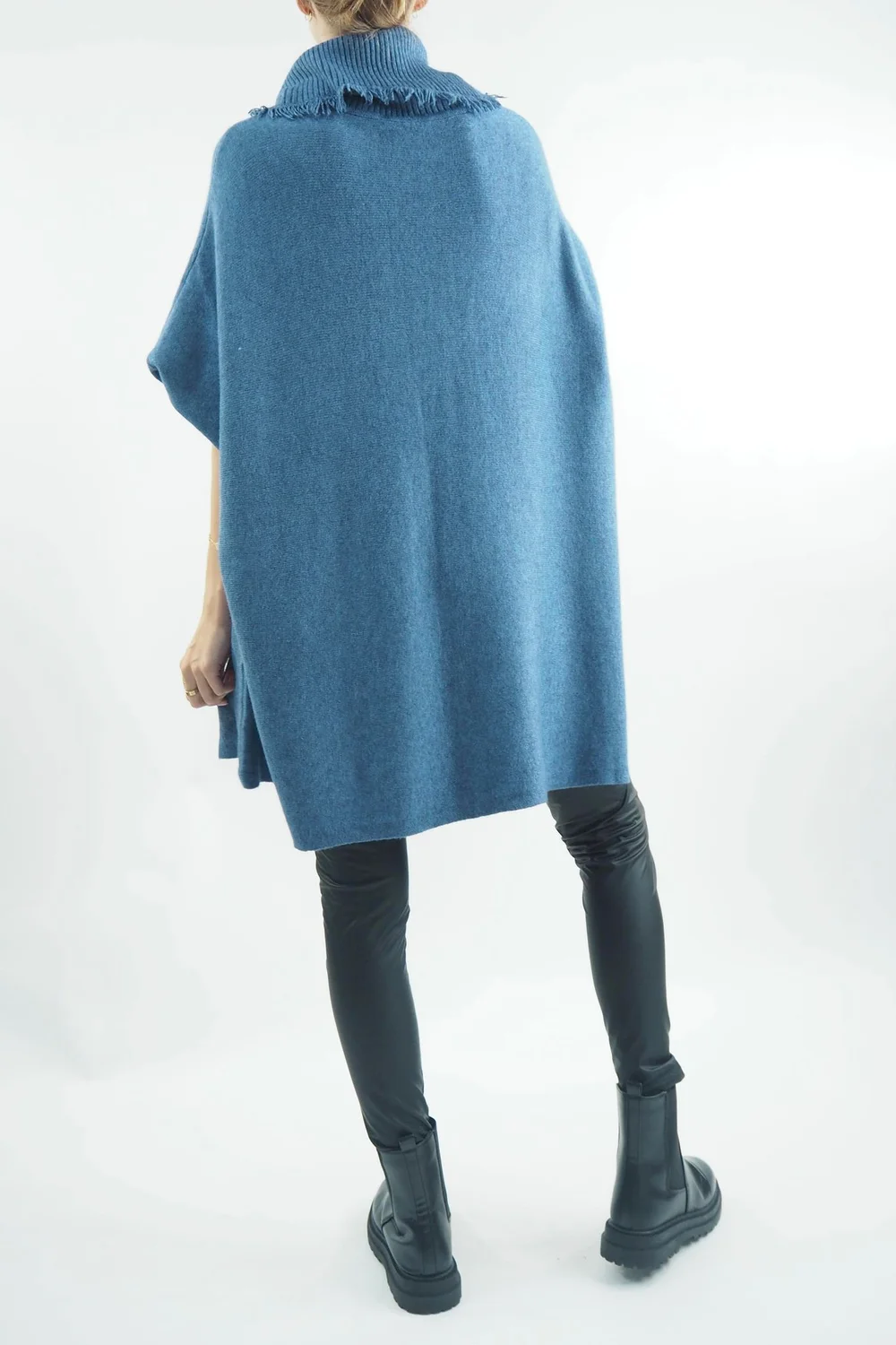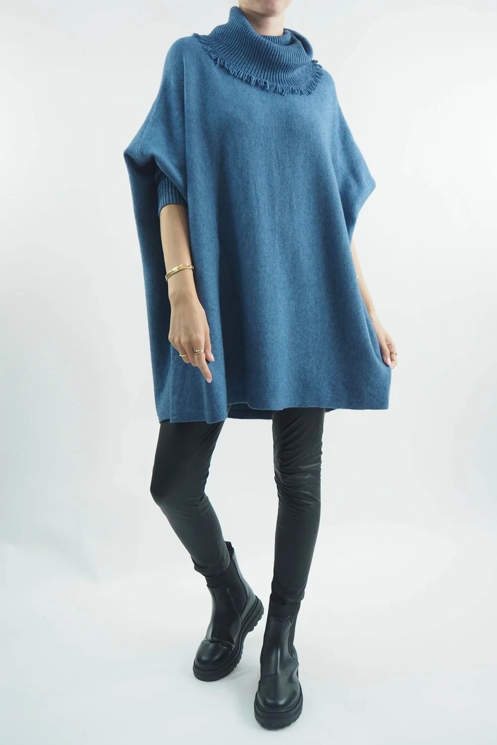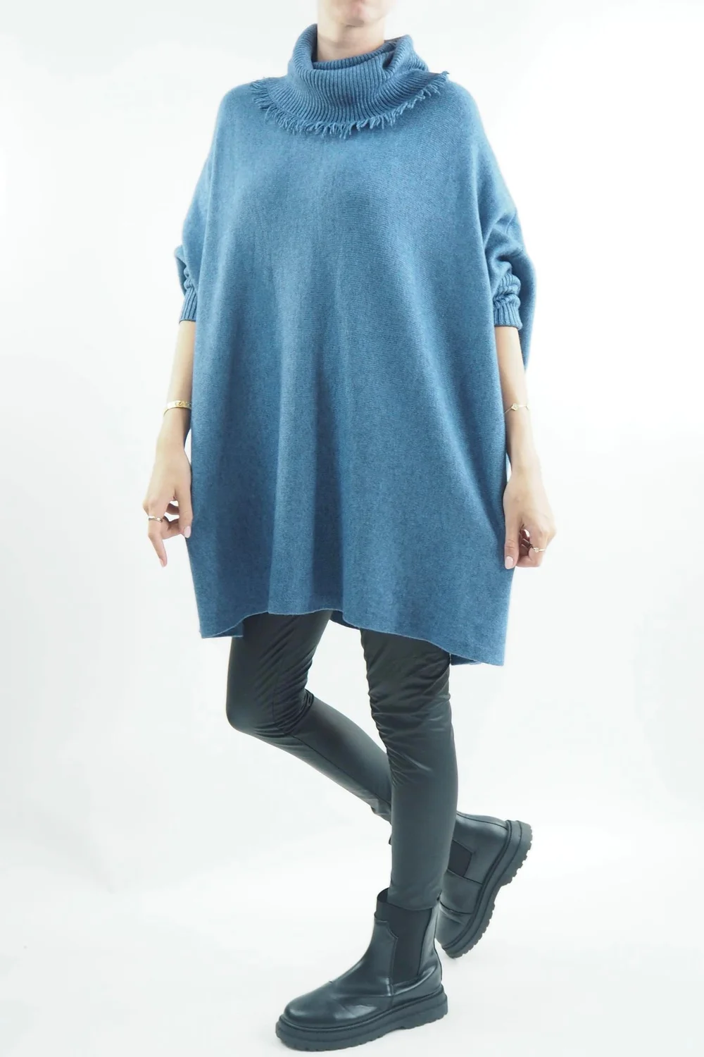 Made In Italy Conrad Oversized Fray Cowl Knit Top Airforce