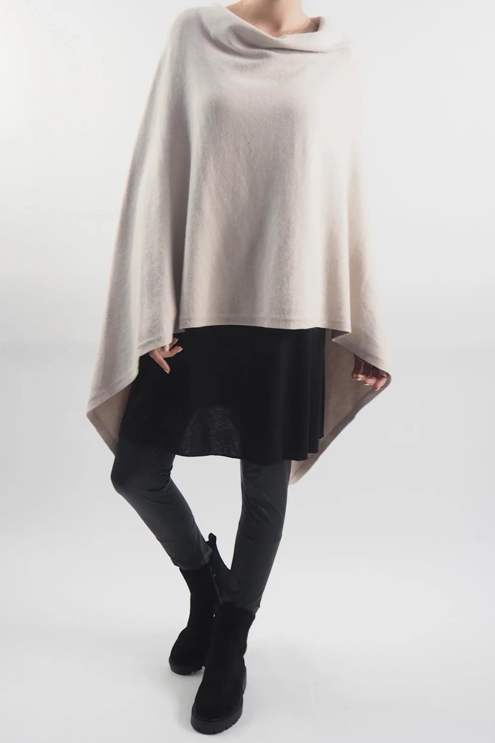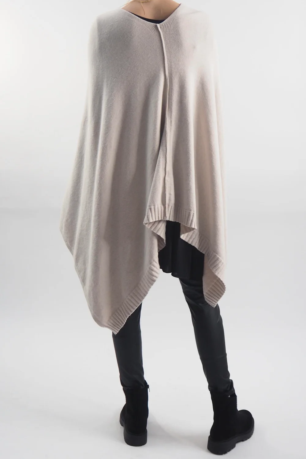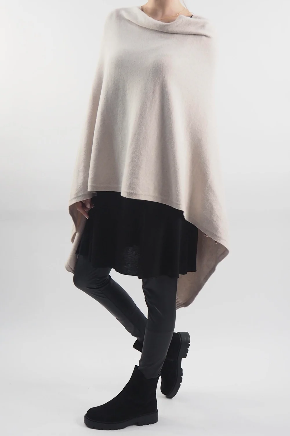 This luxurious poncho is the quintessential cozy layering piece : our Made in Italy Conrad Seam Back Poncho in Stone beige tone is a must have in your autumn wardrobe. Its seamless construction ensures a smooth and sleek appearance, while the drape neck adds an elegant touch that effortlessly elevates any outfit. Whether you’re heading out for a brisk autumn walk, lounging by the fireplace on a chilly winter evening, or adding a finishing touch to a dress, this poncho is the perfect lagenlook layering piece that exudes understated sophistication.
