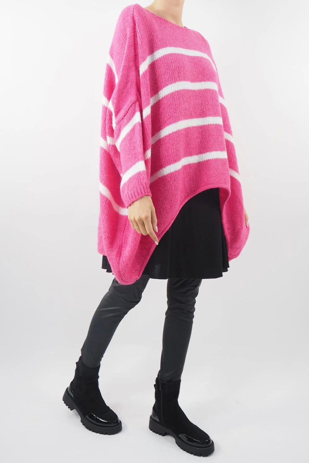 Made In Italy Hush Breton Grunge Knit Top Geranium Pink