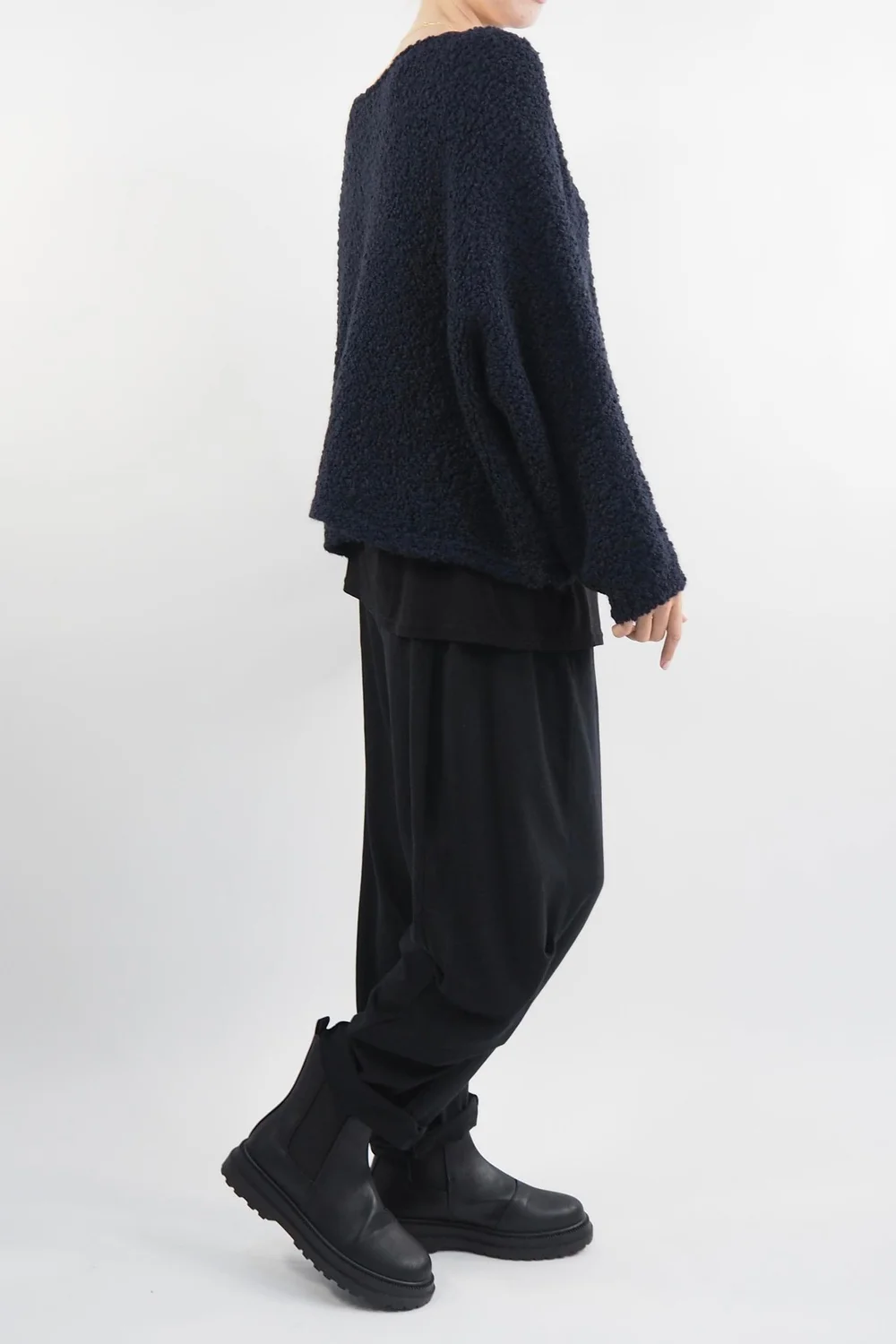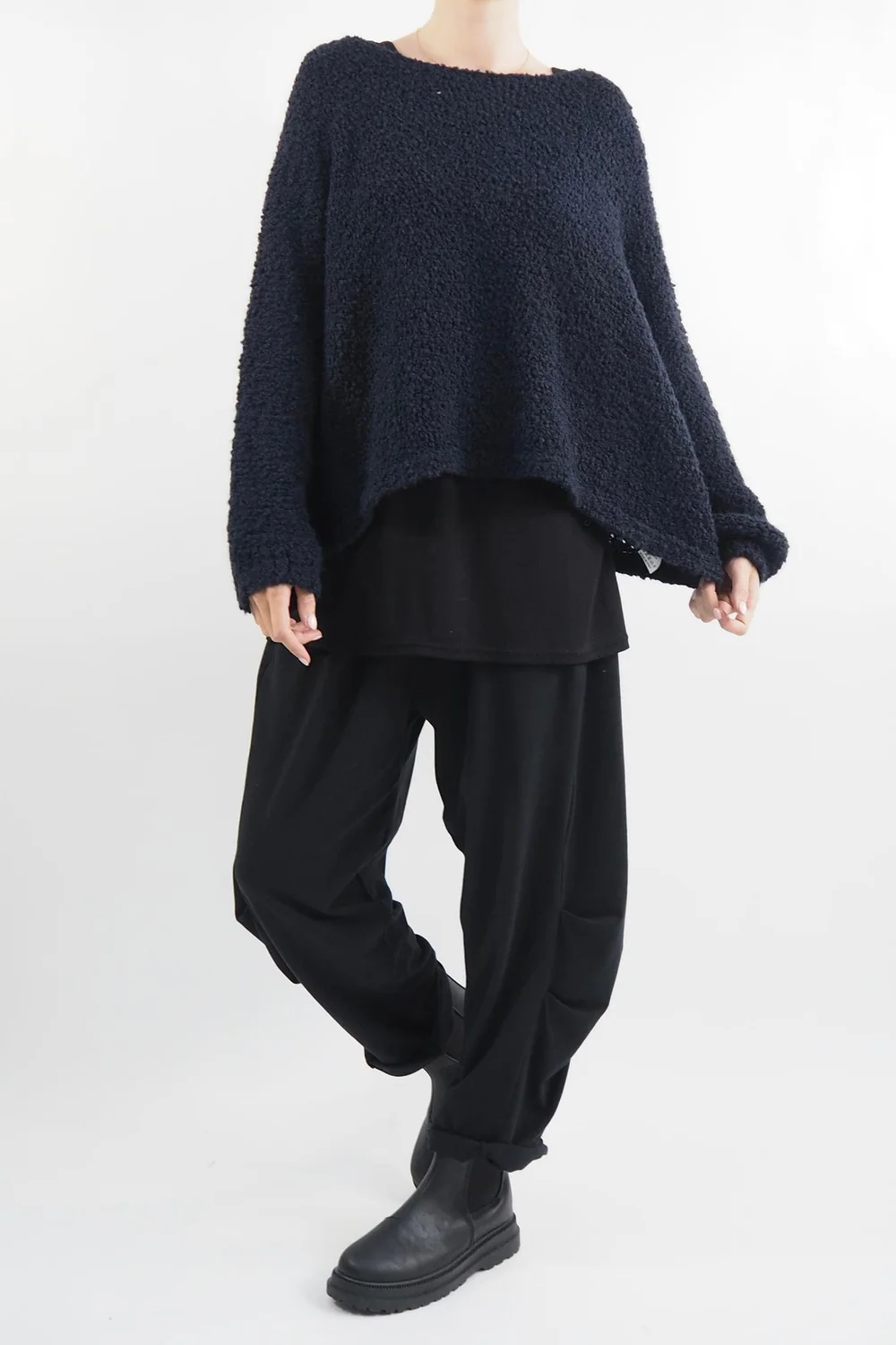 Experience the epitome of comfort and luxury with our Made in Italy Hygge Boucle Knit Top in Ink dark blue. Meticulously crafted using traditional techniques and the finest Italian materials, this knitwear embodies the essence of coziness and relaxation. The unique boucle texture not only adds a tactile charm but also offers an extra layer of warmth. Whether you’re lounging at home or stepping out on a chilly day, the Hygge Boucle Knit wraps you in a sense of well-being and timeless elegance, bringing a touch of Italian craftsmanship and hygge-inspired comfort to your wardrobe. This knit was made to be worn over the Hygge Kick Falre Co-ord.