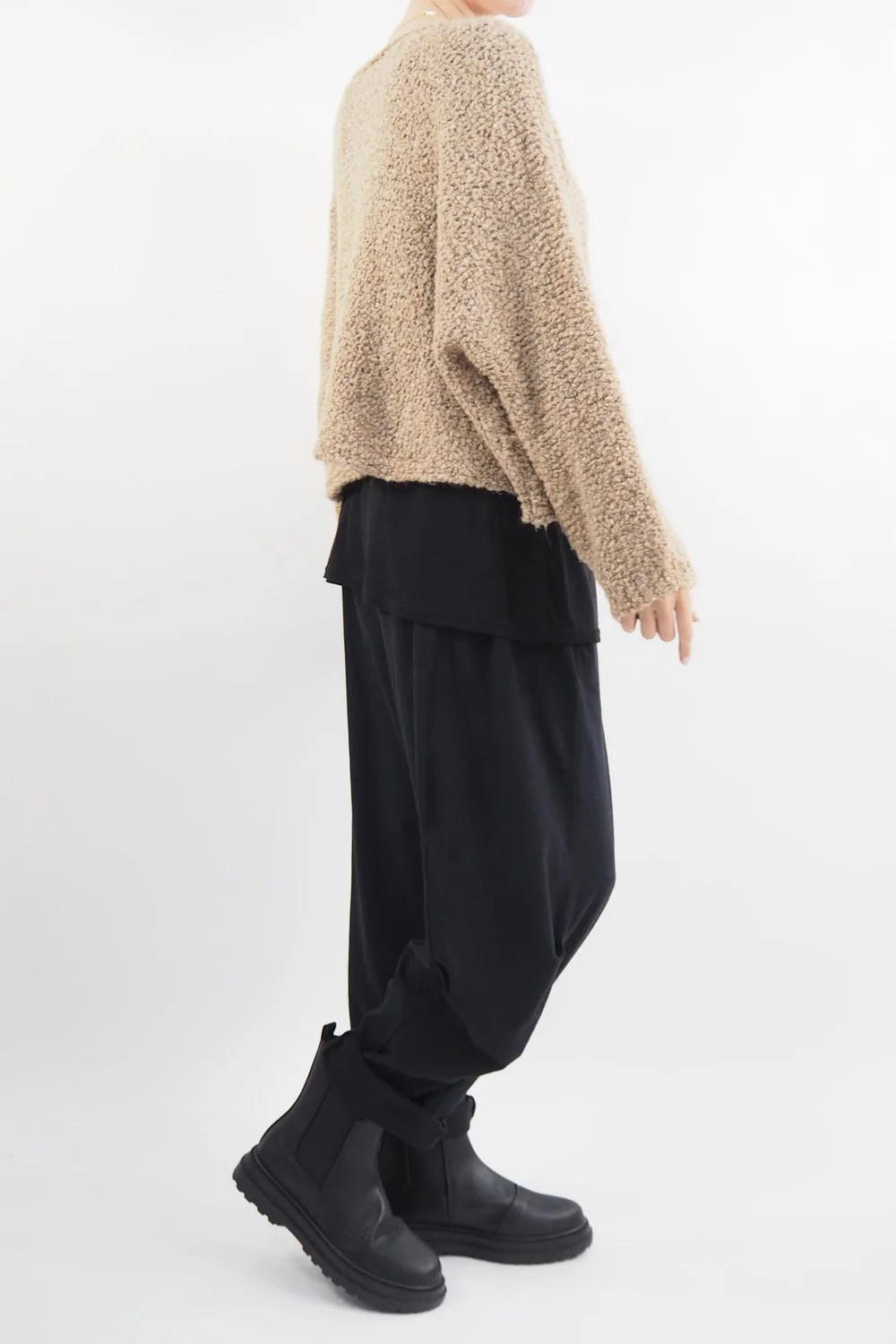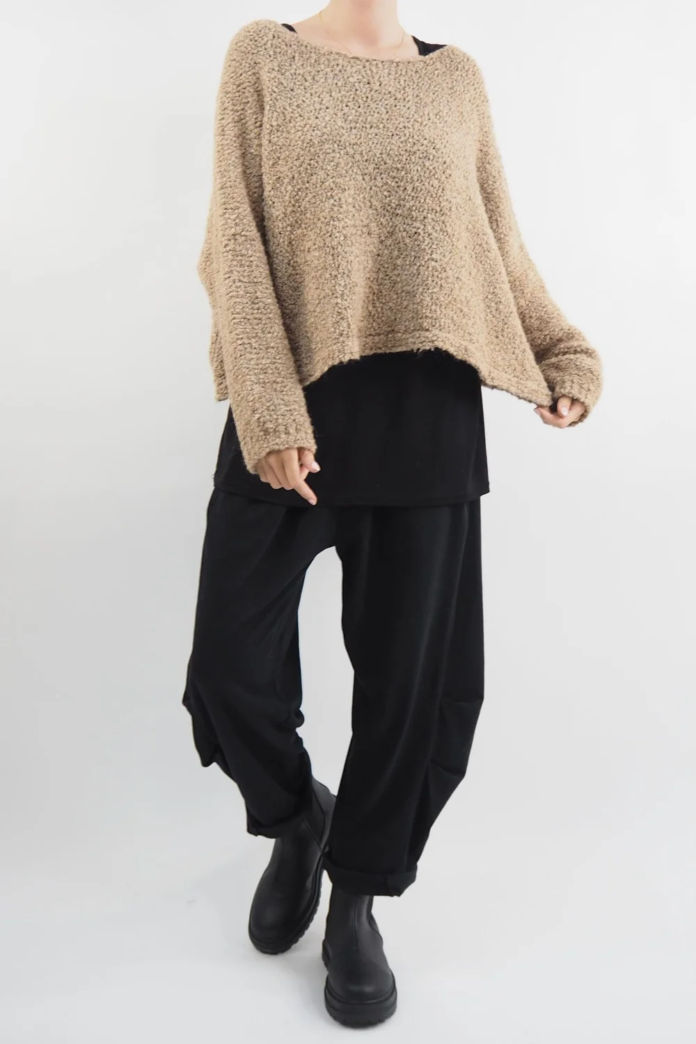 Experience the epitome of comfort and luxury with our Made in Italy Hygge Boucle Knit Top in Toast, tan brown tone. Meticulously crafted using traditional techniques and the finest Italian materials, this knitwear embodies the essence of coziness and relaxation. The unique boucle texture not only adds a tactile charm but also offers an extra layer of warmth. Whether you’re lounging at home or stepping out on a chilly day, the Hygge Boucle Knit wraps you in a sense of well-being and timeless elegance, bringing a touch of Italian craftsmanship and hygge-inspired comfort to your wardrobe. This knit was made to be worn over the Hygge Kick Falre Co-ord.