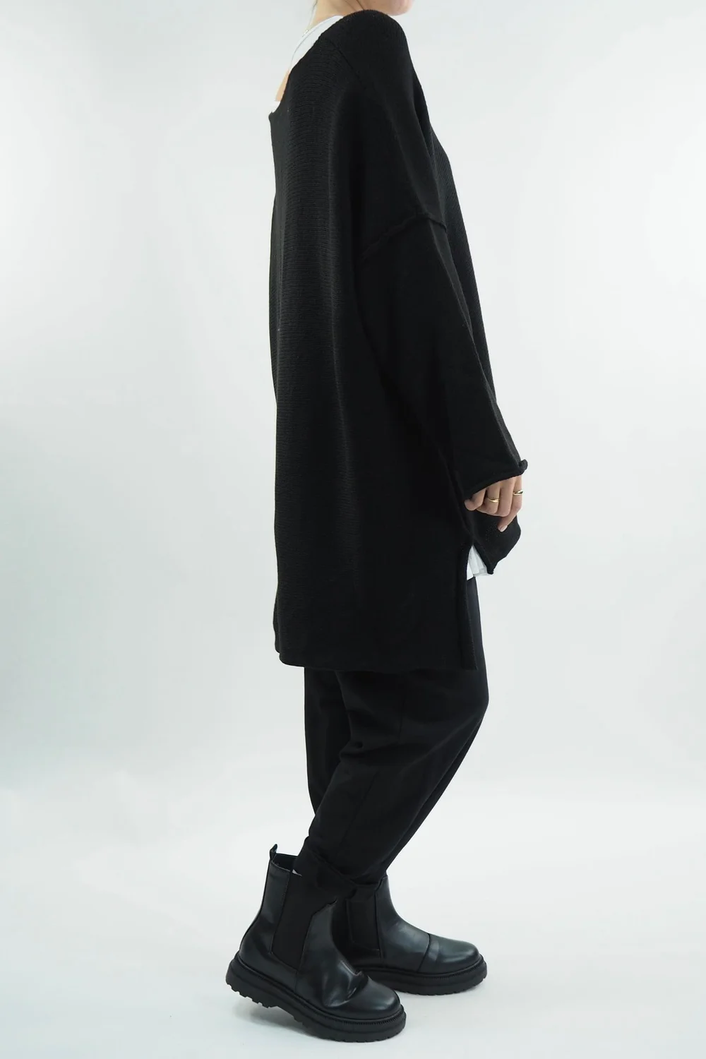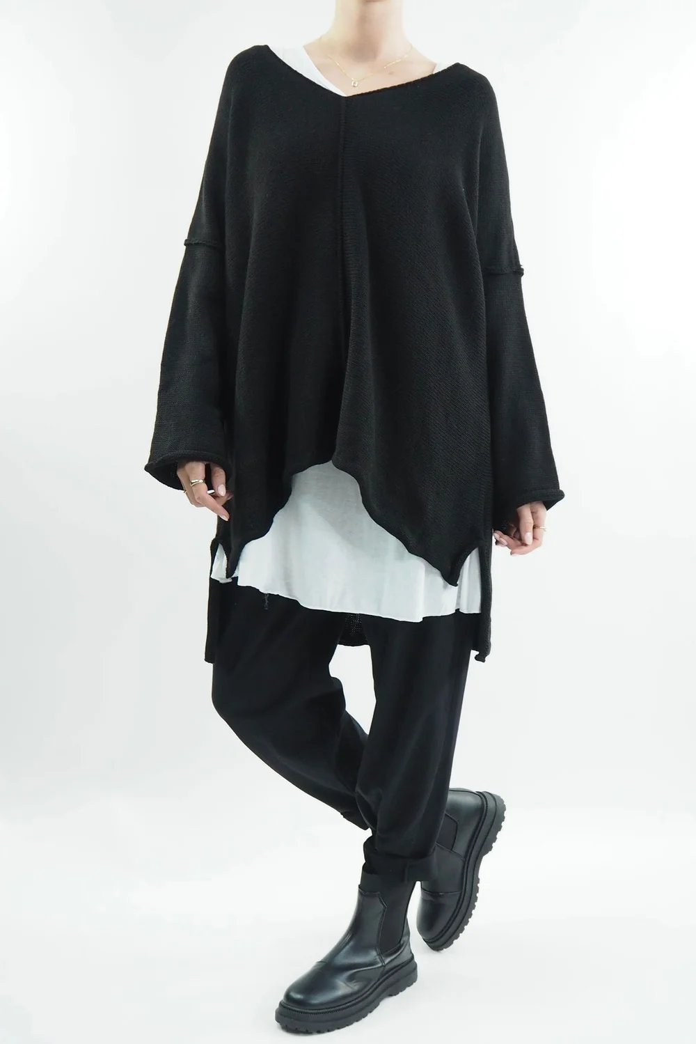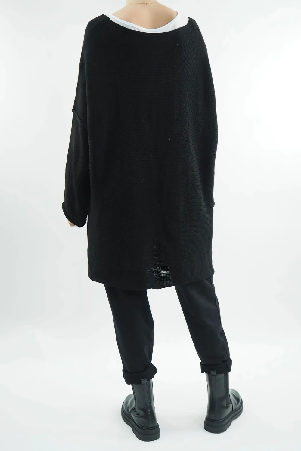 Get ready to embrace ultimate comfort and style with our latest find: the Made in Italy Inside Out Knit Top in Black, this super cosy, oversized knit with a slouchy box shape and exquisite seam details. This season, it’s all about cocooning yourself in warmth without compromising on fashion aesthetics, style our Inside Out Knit with a pair of our Lagenlook Cocoon Pants of Pesca Leather Look Leggings for the perfect look.