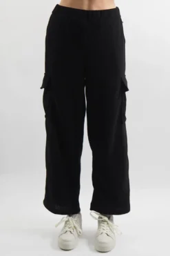 Indulge in the epitome of comfort and style with our latest discovery: the Made in Italy Jumbo Softie Stretch Cord Cargo Pants in Black, a pair of super soft, stretchy, jumbo cord trousers with an elasticated waist that will redefine your everyday look. Crafted from luxurious corduroy, these trousers are a tactile dream, providing a velvety touch against your skin. The stretchy fabric ensures freedom of movement while maintaining a sleek silhouette. Perfect for those crisp autumn mornings or chilly winter afternoons, these trousers are your versatile style solution. To complete the ensemble, a matching jacket, the Made in Italy Jumbo Softie Stretch Cord Long Zip Jacket, is also available, creating an effortlessly chic and cosy outfit that pairs perfectly with our Fine Jersey Polo Neck and your favorite boots.