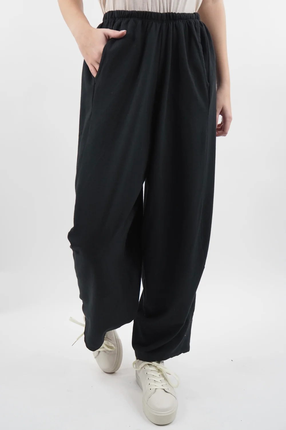 Step into the realm of timeless elegance with the Made in Italy Lagenlook Classic Cocoon Pant in Black – a true fashion staple that effortlessly combines comfort and sophistication. These pants redefine relaxed chic, draping you in luxury with every movement. Crafted from the finest cotton, the elasticated waistband ensures a perfect fit and all-day comfort, while the cocoon silhouette adds a touch of effortless grace to your ensemble. Versatility is at its peak with these pants, making them a go-to choice for any occasion. With their seamless fusion of style and ease, these cocoon pants are the epitome of fashion brilliance, proving that comfort can be the most elegant expression of style.