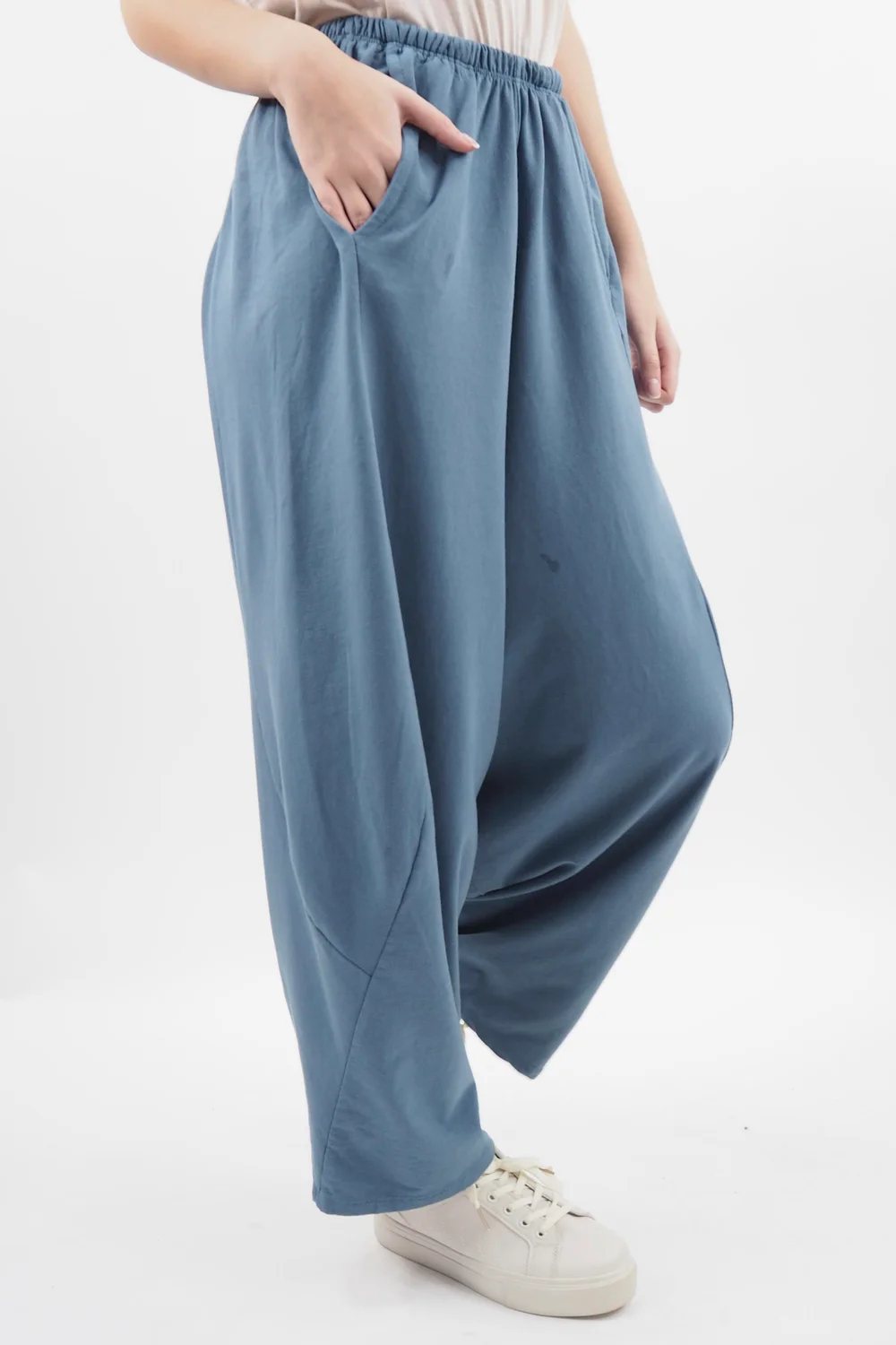 Step into the realm of timeless elegance with the Made in Italy Lagenlook Classic Cocoon Pant in Denim, blue tone – a true fashion staple that effortlessly combines comfort and sophistication. These pants redefine relaxed chic, draping you in luxury with every movement. Crafted from the finest cotton, the elasticated waistband ensures a perfect fit and all-day comfort, while the cocoon silhouette adds a touch of effortless grace to your ensemble. Versatility is at its peak with these pants, making them a go-to choice for any occasion. With their seamless fusion of style and ease, these cocoon pants are the epitome of fashion brilliance, proving that comfort can be the most elegant expression of style.