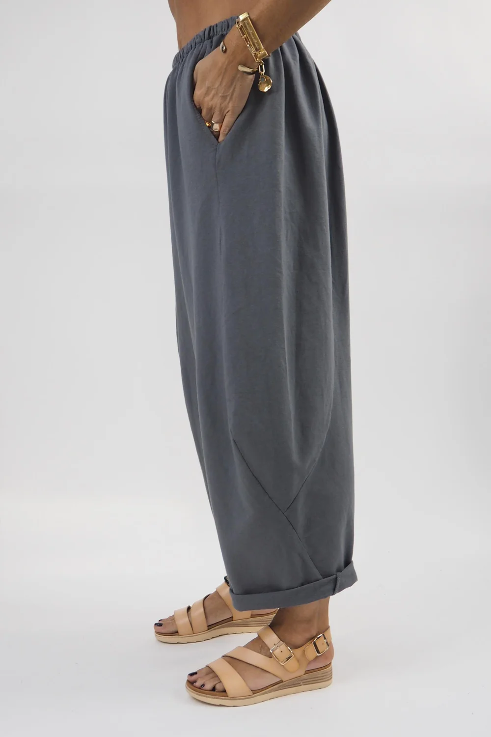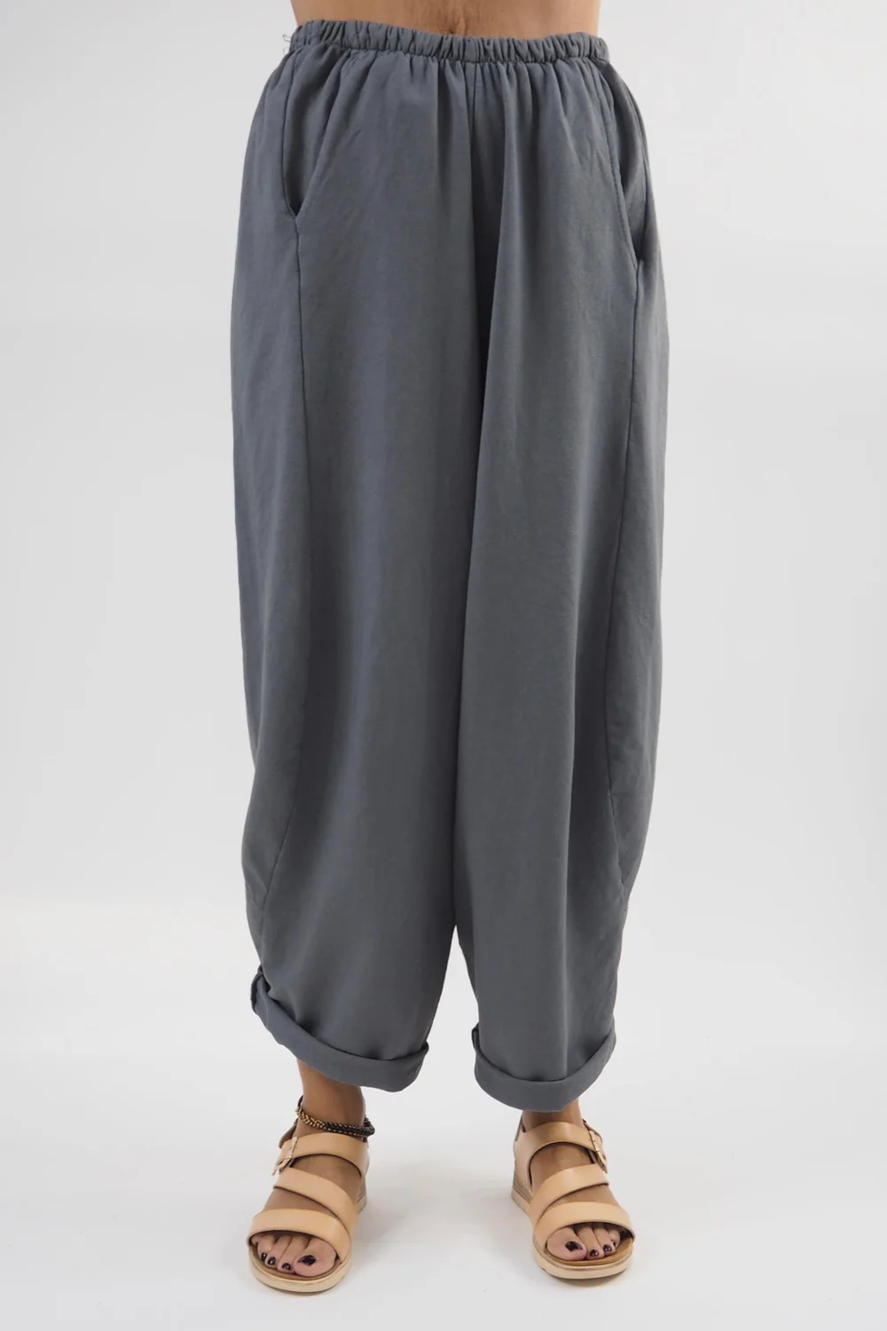 Step into the realm of timeless elegance with the Made in Italy Lagenlook Classic Cocoon Pant in Storm – a true fashion staple that effortlessly combines comfort and sophistication. These pants redefine relaxed chic, draping you in luxury with every movement. Crafted from the finest cotton, the elasticated waistband ensures a perfect fit and all-day comfort, while the cocoon silhouette adds a touch of effortless grace to your ensemble. Versatility is at its peak with these pants, making them a go-to choice for any occasion. With their seamless fusion of style and ease, these cocoon pants are the epitome of fashion brilliance, proving that comfort can be the most elegant expression of style.