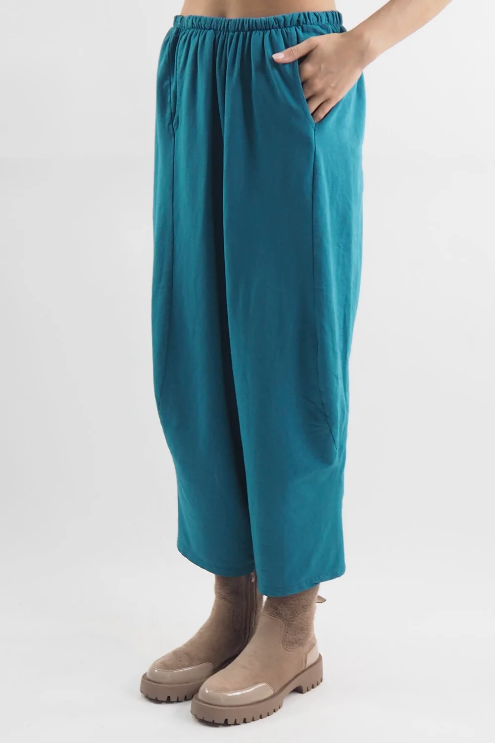 Step into the realm of timeless elegance with the Made in Italy Lagenlook Classic Crop Cocoon Pant in Teal – a true fashion staple that effortlessly combines comfort and sophistication. These pants redefine relaxed chic, draping you in luxury with every movement. Crafted from the finest cotton, the elasticated waistband ensures a perfect fit and all-day comfort, while the cocoon silhouette adds a touch of effortless grace to your ensemble. Versatility is at its peak with these pants, making them a go-to choice for any occasion. With their seamless fusion of style and ease, these cocoon pants are the epitome of fashion brilliance, proving that comfort can be the most elegant expression of style.