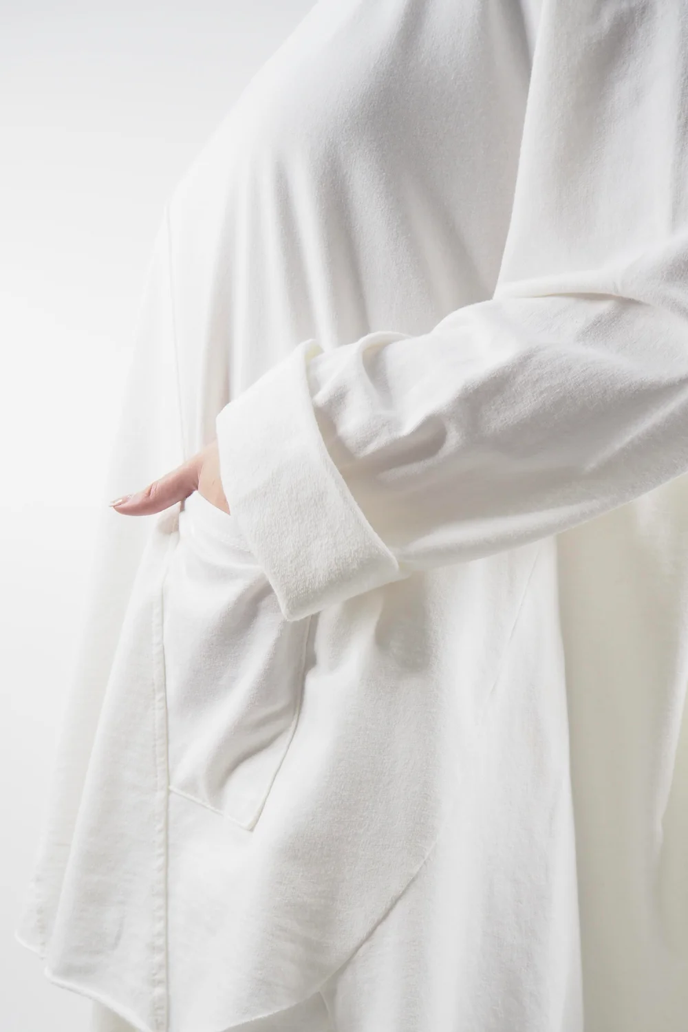 Let’s take your casual wardrobe to the next level with the Made in Italy Lagenlook High Low Pocket Sweatshirt in Ecru, warm white tone, this piece effortlessly combines quirky design features with comfort, making them a must-have staple for everyone. Made from the softest cotton, with the perfect amount of stretch, the pocket & seam details add a comtempoary twist. Style with our Made in Italy Lagenlook Shelby Pants or Made in Italy Lagenlook Classic Cocoon Pants for a must have look this autumn.