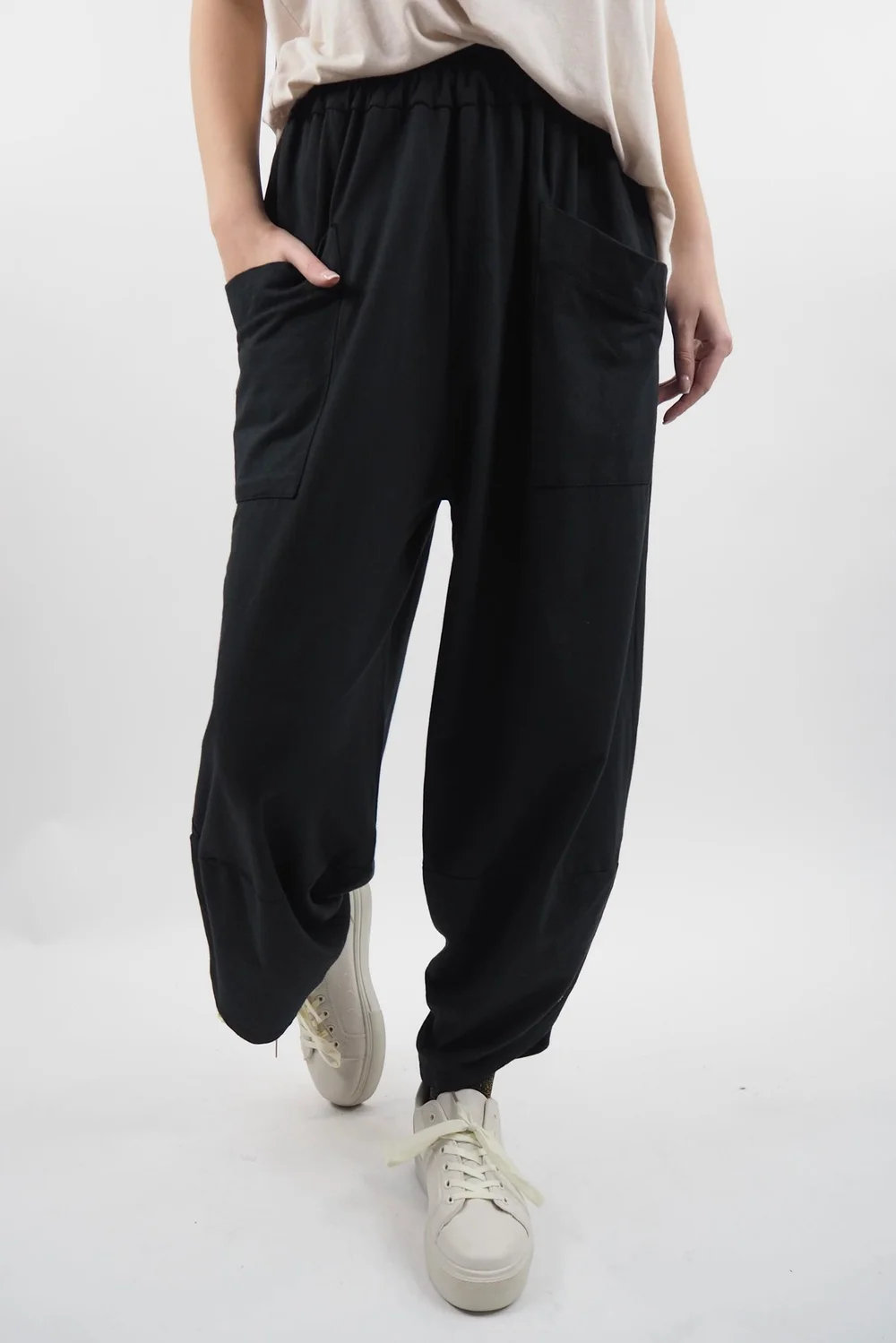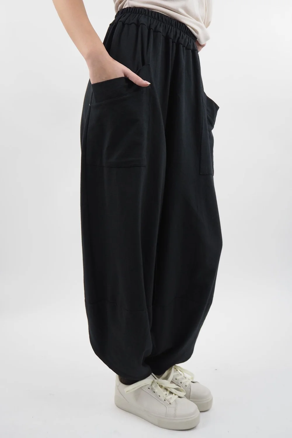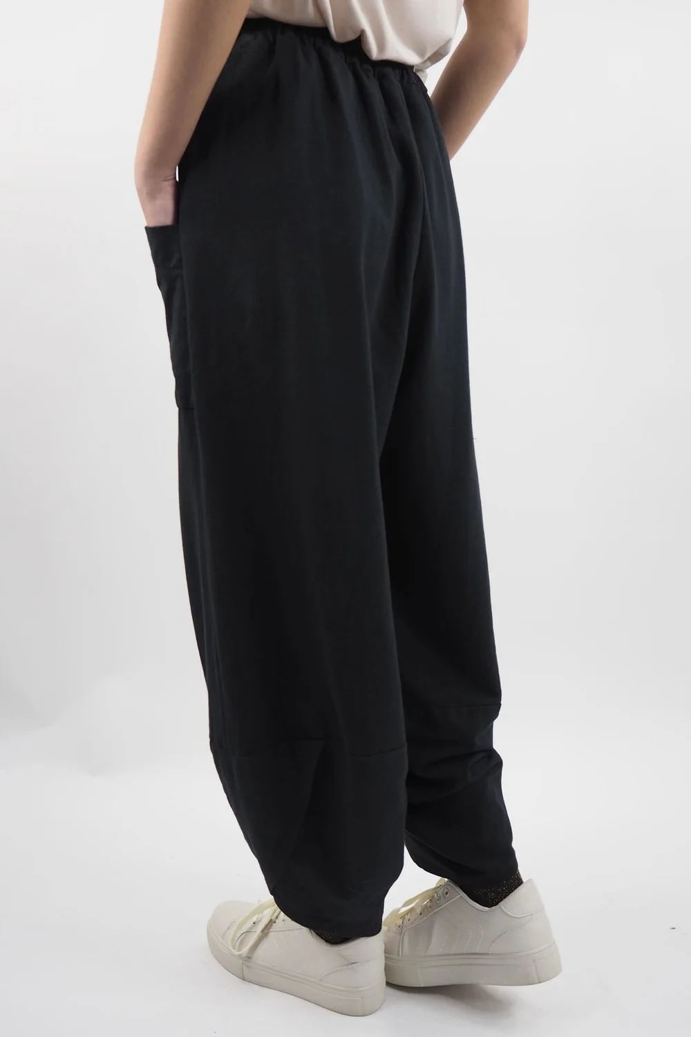 Prepare to elevate your casual wardrobe with the Made in Italy Lagenlook Shelby Cocoon Pant in a classic Black Tone – is a modern twist on a timeless favourite that exudes effortless cool. These cocoon pants seamlessly blend comfort and style, making them a must-have staple for everyone. Made from the softest cotton, the scallop hem design adds a touch of contemporary twist. This unexpected detail sets these cocoon pants apart, making them a statement piece that effortlessly elevates any casual outfit. Embody the essence of casual sophistication with the perfect pant – a true fashion gem that will effortlessly take you from laid-back days to stylish nights with ease.