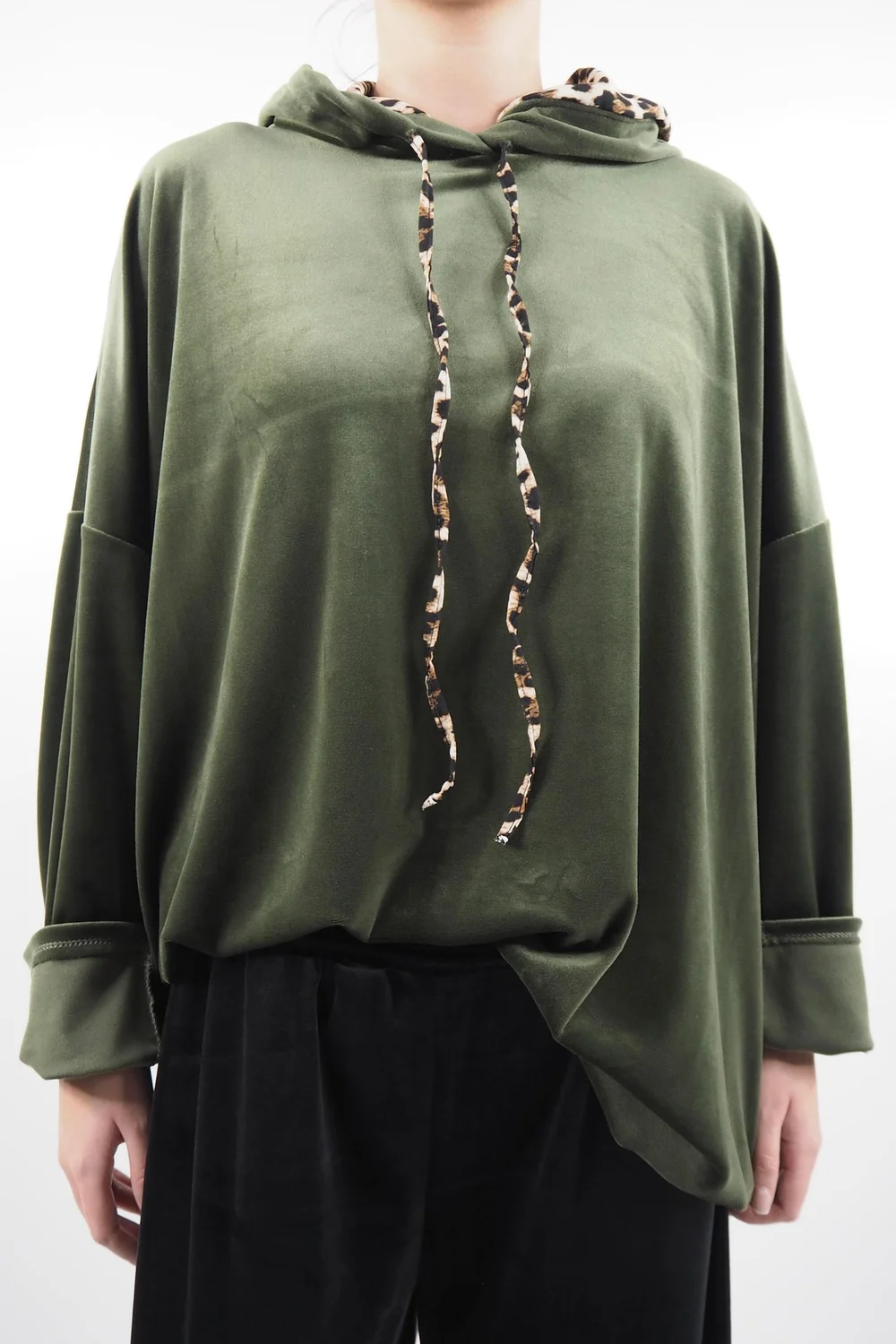 Made In Italy Leopard Love Stretch Velour Hoodie Olive