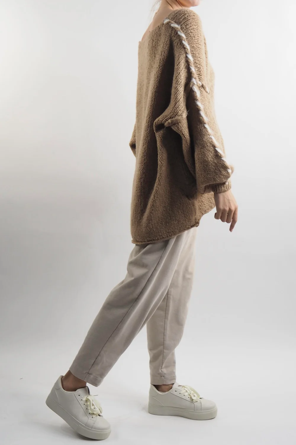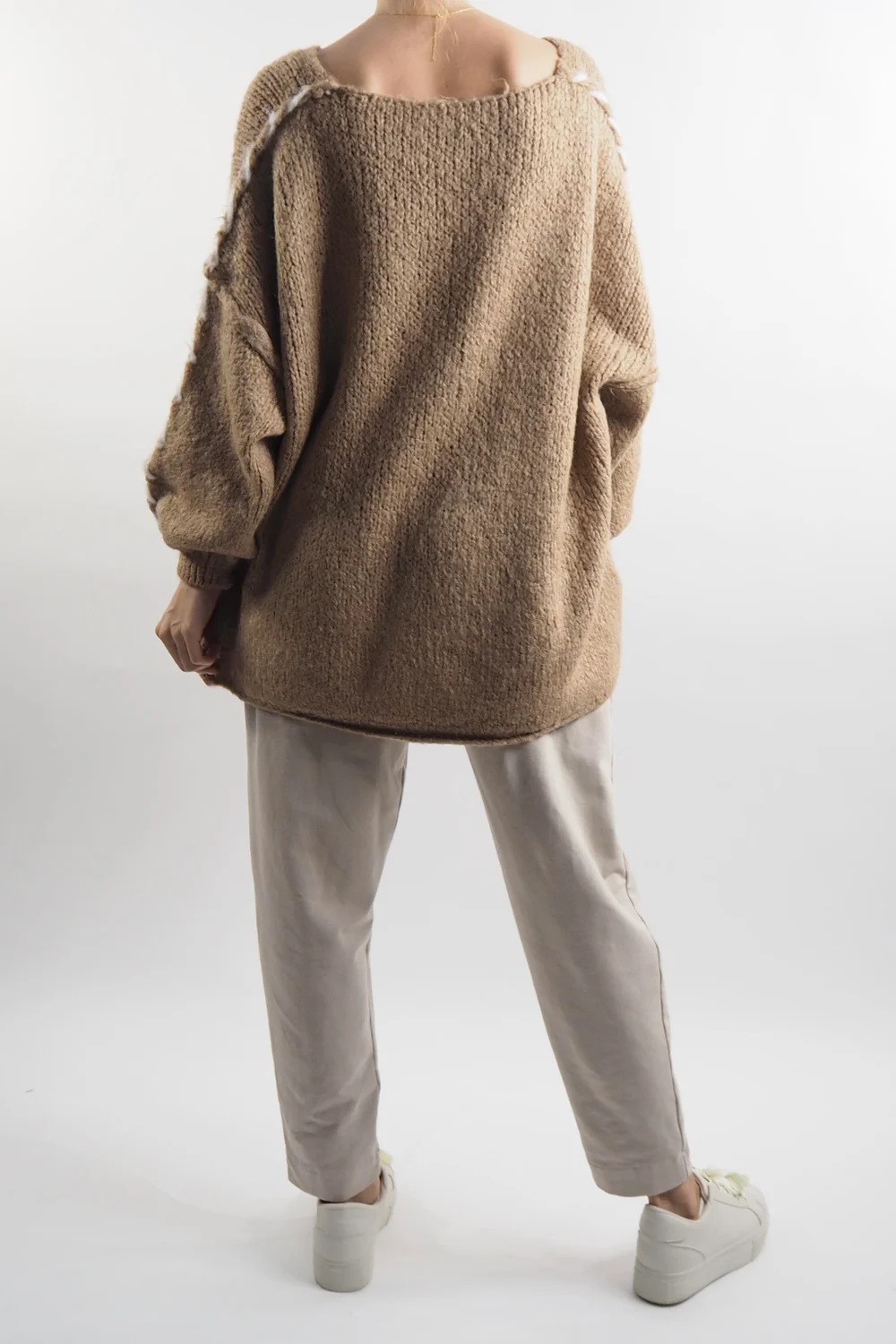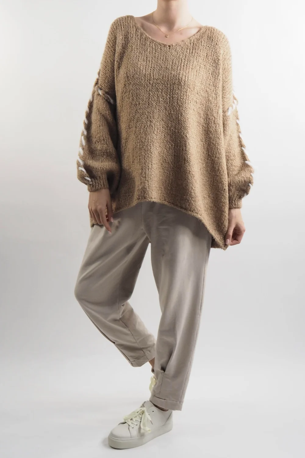 Indulge in the epitome of autumn and winter comfort: the Made in Italy Malmo Oversized Over Stich Knit Top in Ecru, cream tone. This season’s must-have, this snugly sweater is the ultimate embodiment of hygge, enveloping you in warmth and style as the temperatures drop. Whether you’re sipping hot chocolate by the fireplace or strolling through the crisp autumn leaves, this knit jumper is your go-to fashion statement for staying snug and chic.