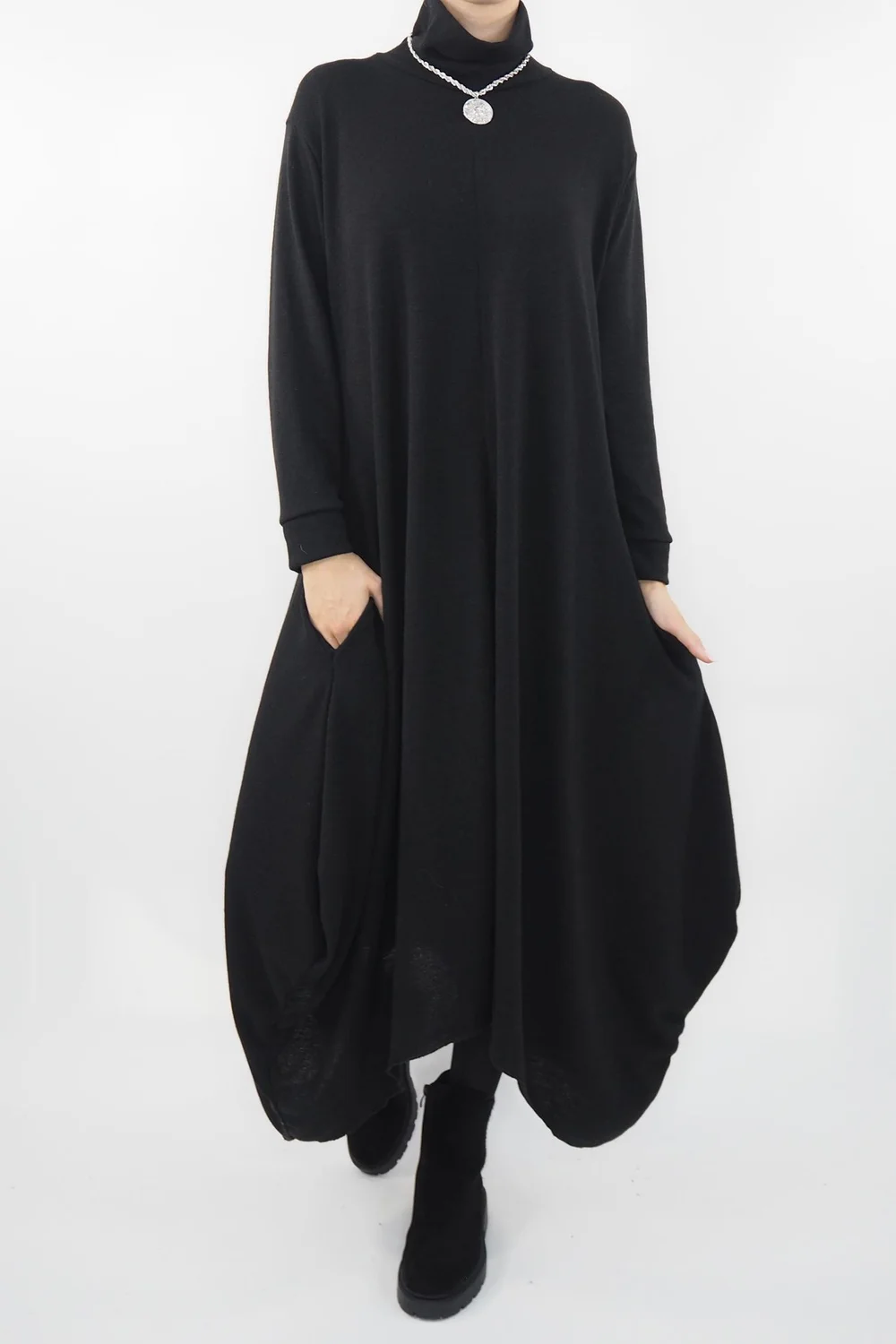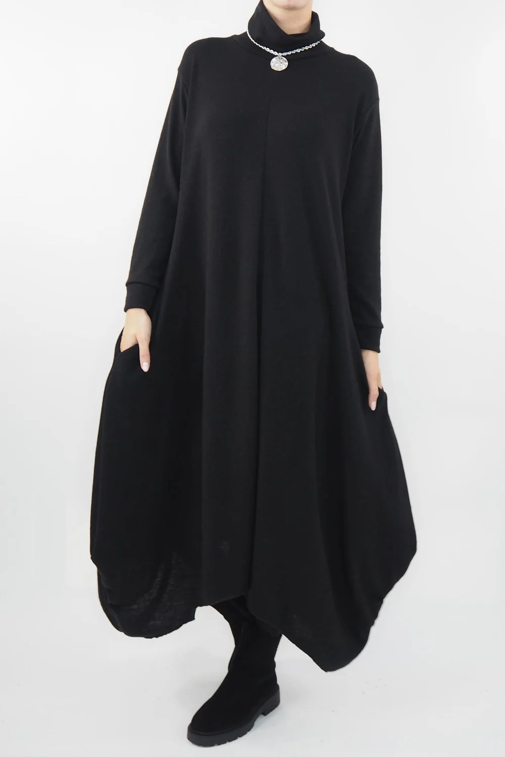 Indulge in the epitome of edgy luxury with this extraordinary piece: the Moxie Polo Neck Tulip Knit Dress from Made in Italy Clothing redefines elegance and style. The chic polo neck design adds a touch of sophistication while maintaining an air of avant-garde rebellion. Crafted with the finest yarn, this dress is a tactile delight, wrapping you in a warm embrace of opulence & the daring tulip hemline cascades gracefully. Its unique combination of bold design and sumptuous comfort makes it the perfect choice for the style-conscious woman who also craves comfort.