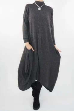 Indulge in the epitome of edgy luxury with this extraordinary piece: the Moxie Polo Neck Tulip Knit Dress from Made in Italy Clothing redefines elegance and style. The chic polo neck design adds a touch of sophistication while maintaining an air of avant-garde rebellion. Crafted with the finest yarn, this dress is a tactile delight, wrapping you in a warm embrace of opulence & the daring tulip hemline cascades gracefully. Its unique combination of bold design and sumptuous comfort makes it the perfect choice for the style-conscious woman who also craves comfort.