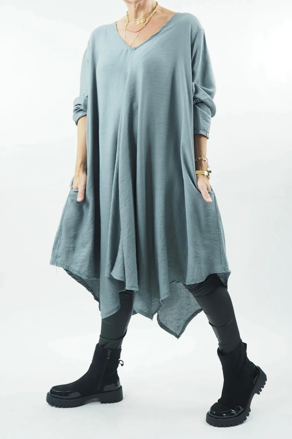 Made In Italy Nomad Handkerchief Pocketed Tunic Storm