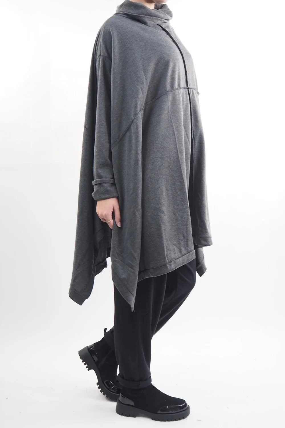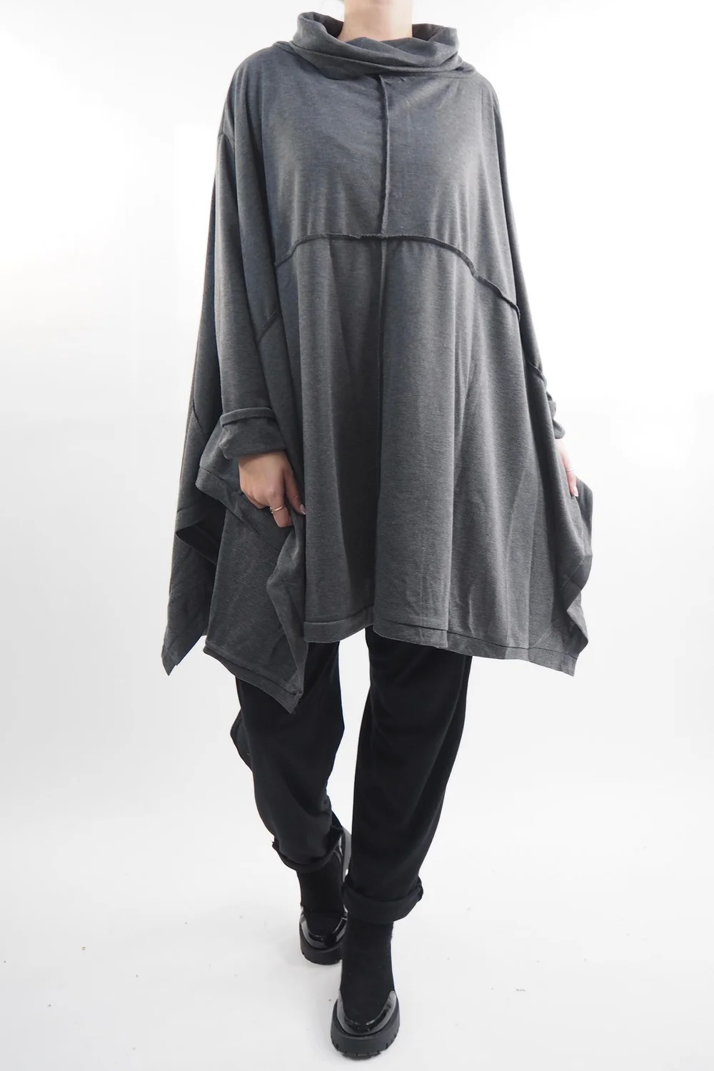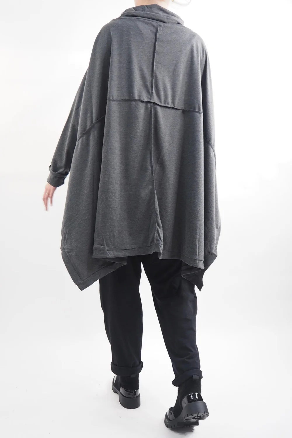 Made In Italy Oversized Inside Out Cowl Top Charcoal