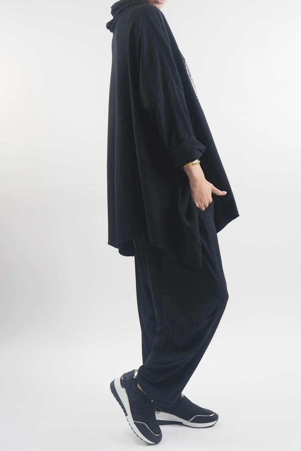 Crafted from the softest cotton, the oversized cowl neck adds an element of drama and sophistication. The star skull micro stud pattern creates a mesmerizing contrast, adding a touch of rebellious glamour to your look. Whether you’re rocking it with bodhi tuck cocoon pant or our Laundry B DAS Premium Sculpt Denim Legging, this top effortlessly fuses comfort with an undeniably chic edge.