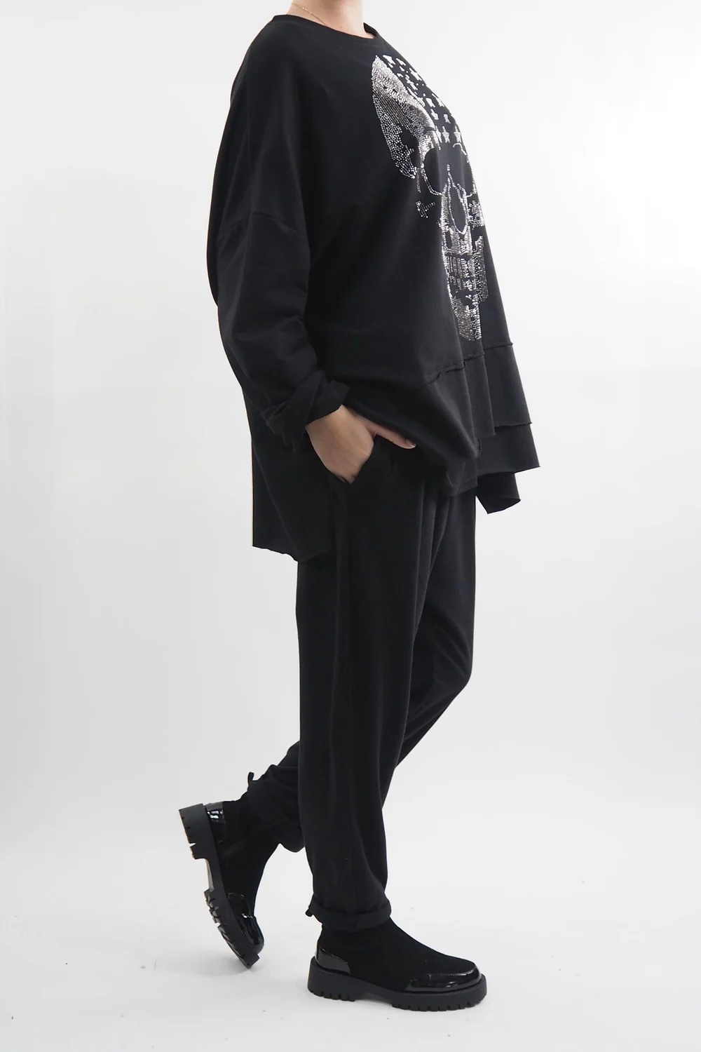 Get ready to unleash your inner rockstar with the Made in Italy Queeni Star Skull Cut Out Top in Black, adorned with a mesmerizing Star Skull Micro Stud design in pewter silver! This edgy yet incredibly comfortable piece redefines the boundaries of casual fashion, making it a must-have addition to your wardrobe.