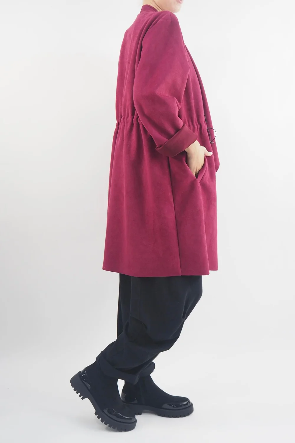The Made in Italy Sander Moleskin Touch Sporty Waterfall Jacket in Magenta pink tones, these jackets are a dream come true, combining the luxurious look of moleskin with the cruelty-free appeal of faux leather. With their sporty and waterfall vibe, these jackets are the epitome of cool confidence, effortlessly elevating any outfit to new heights. The faux moleskin material not only adds a touch of opulence but also provides a velvety softness that feels like a dream against the skin. The drawstring waist gives shape and flatters all body types, making a strong statement wherever you go.