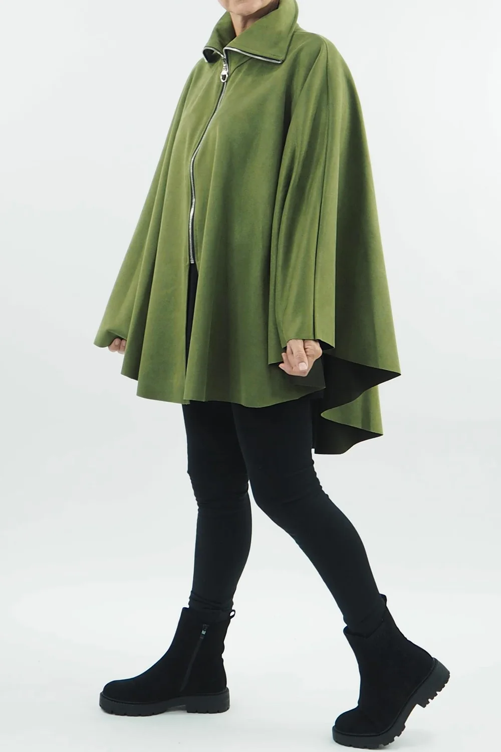 Made In Italy Sander Moleskin Touch Stretch Zippy Cape Olive //