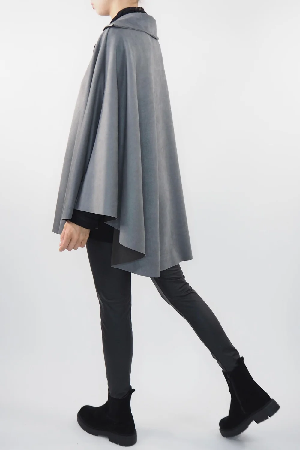 Comfort and sophistication with the Made in Italy Sander Moleskin Touch Stretch Zippy Cape in Shadow grey tones, modern luxury and versatile style. This exquisite piece effortlessly drapes the body, while the innovative zip detail adds a touch of contemporary flair to its timeless design. Whether layered over sleek city ensembles or cozy countryside attire, this cape redefines elegance, promising a seamless fusion of comfort, fashion, and functionality.