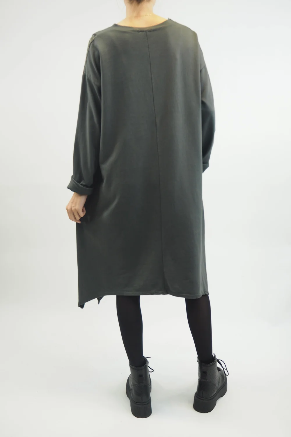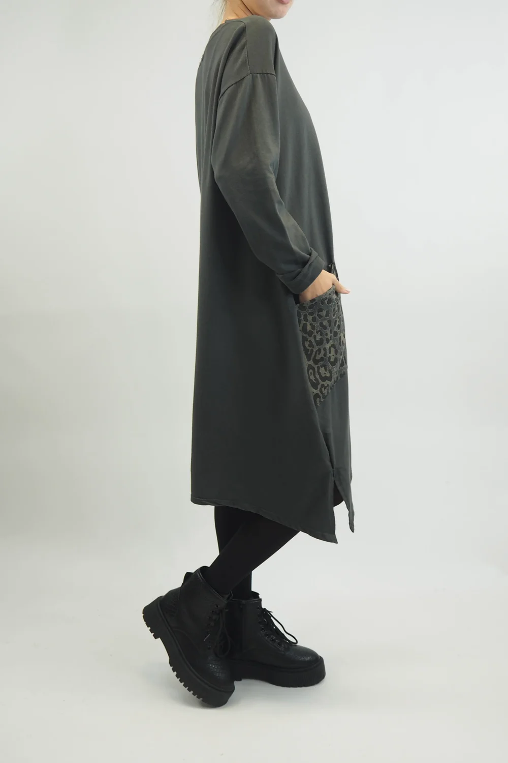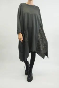 Made In Italy Tokyo Leopard Panel Dress Shadow Grey